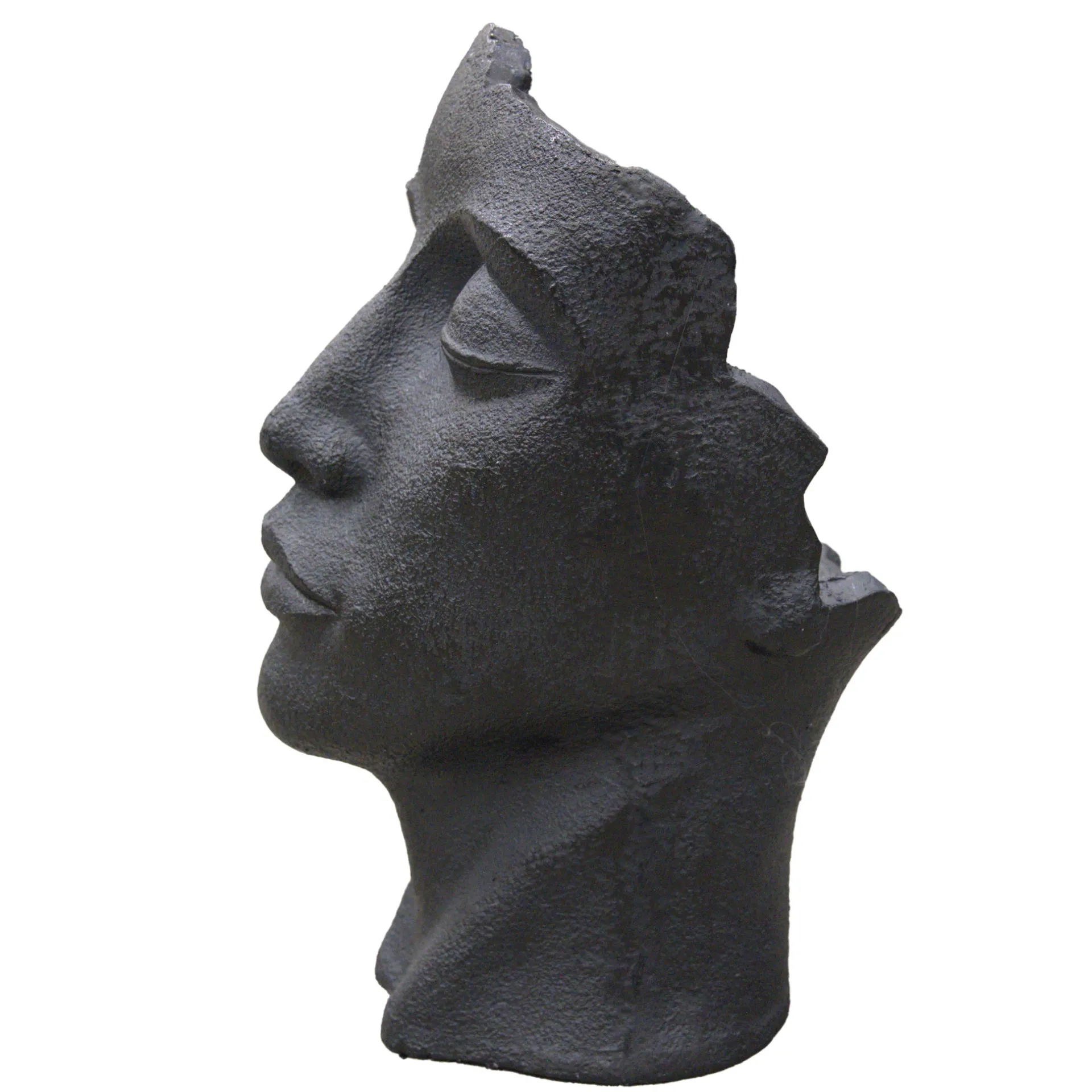 Decoratieve bloempot in de vorm van een gestileerd gezicht met gesloten ogen en onregelmatige bovenrand. Combineert kunst met natuur en is een eyecatcher in elke tuin. Het heeft een fijne structuur, matte zwarte afwerking en een plant met overhangend groen maakt het een sfeervol geheel. Verkrijgbaar in verschillende kleuren, maar ook leuk om te combineren met andere antracietkleurige beelden en bloempotten uit onze collectie.