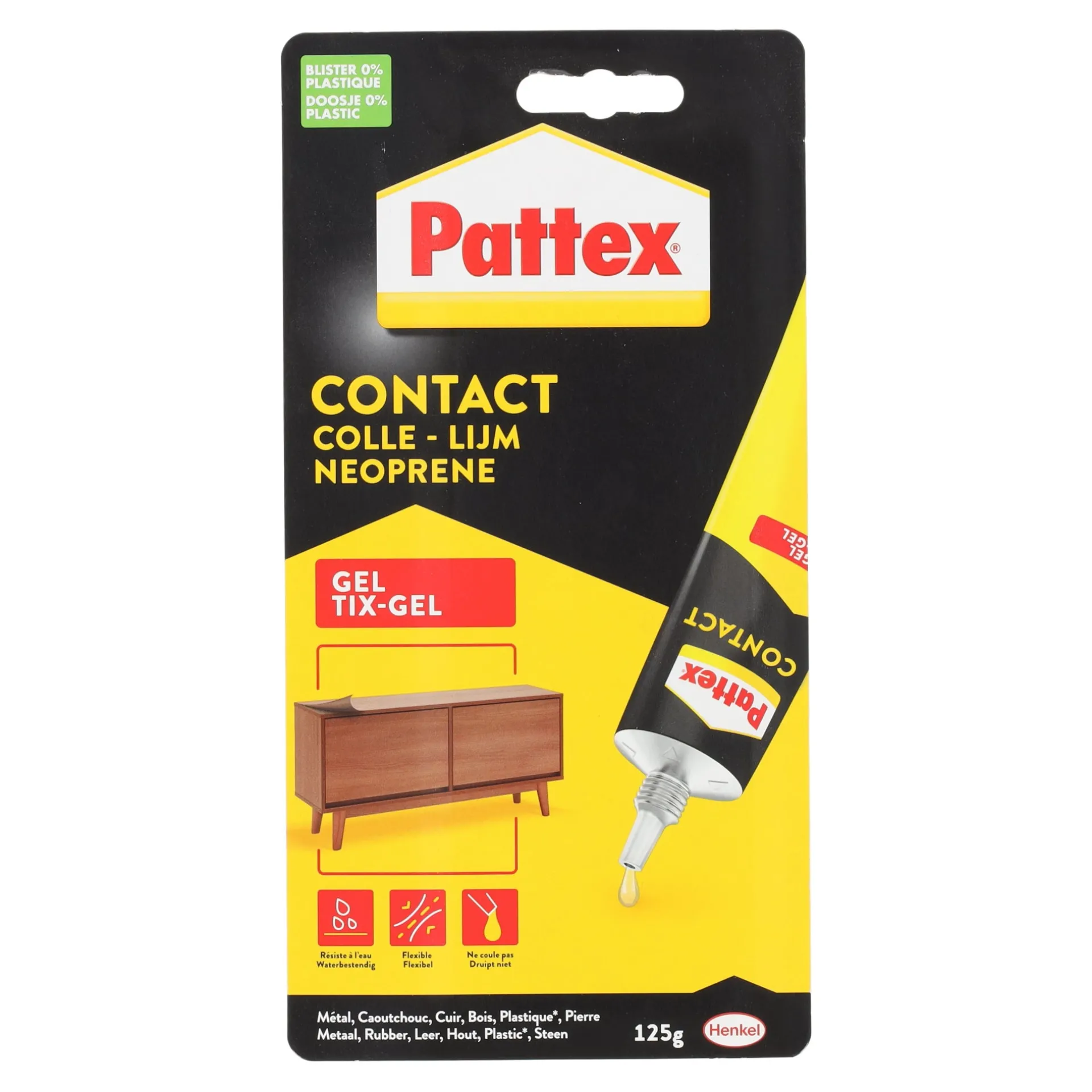 Pattex Contactlijm Tix-gel 125 g heeft een geltextuur die druipen voorkomt en een precieze applicatie mogelijk maakt. Geschikt voor diverse oppervlakken zoals hout, metaal, rubber en kunststof.