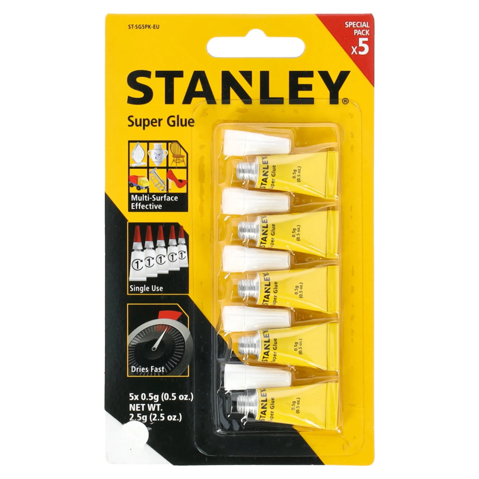 De secondelijmset van Stanley , ideaal voor snelle en precieze verlijming van diverse materialen. Perfect voor kleine reparaties thuis of onderweg.