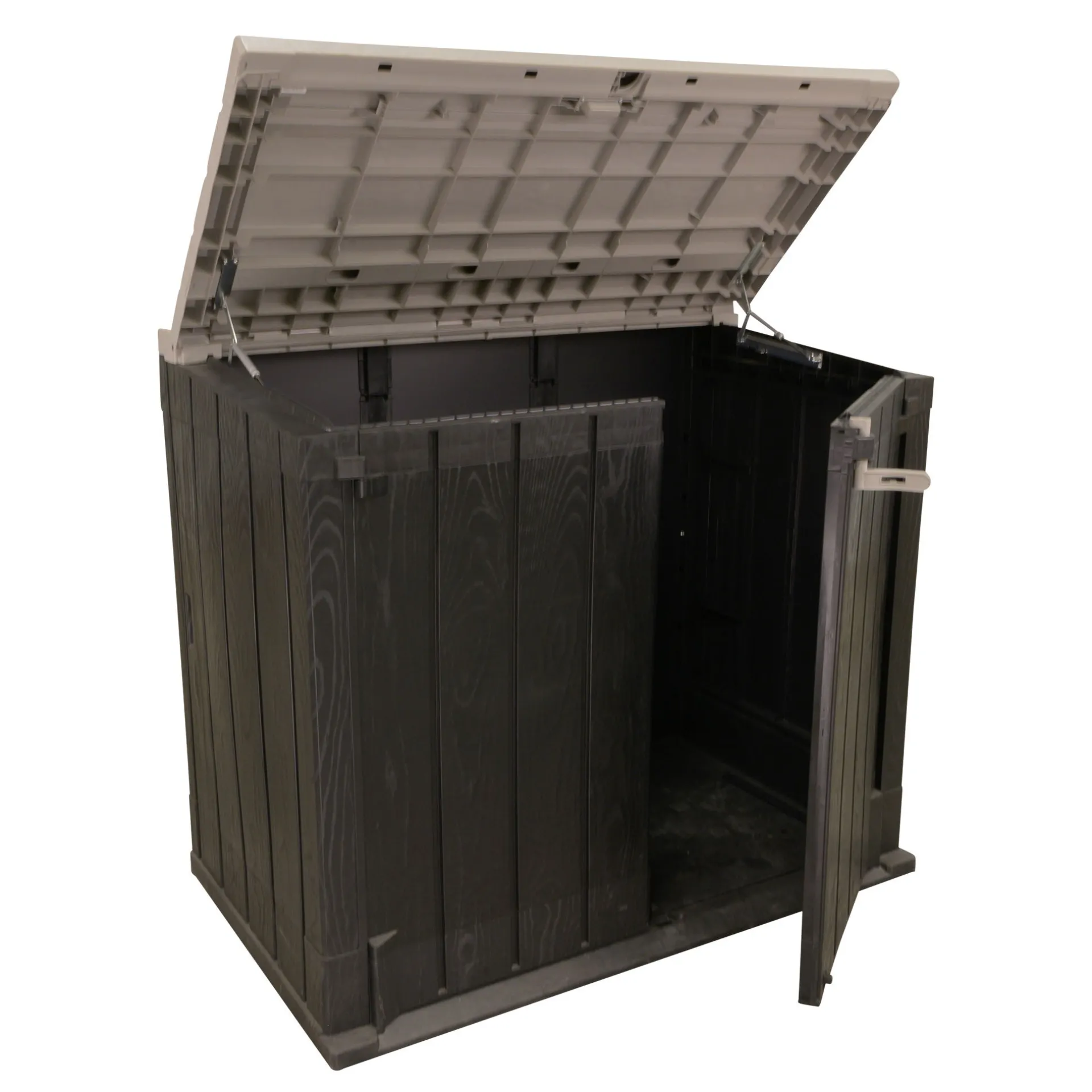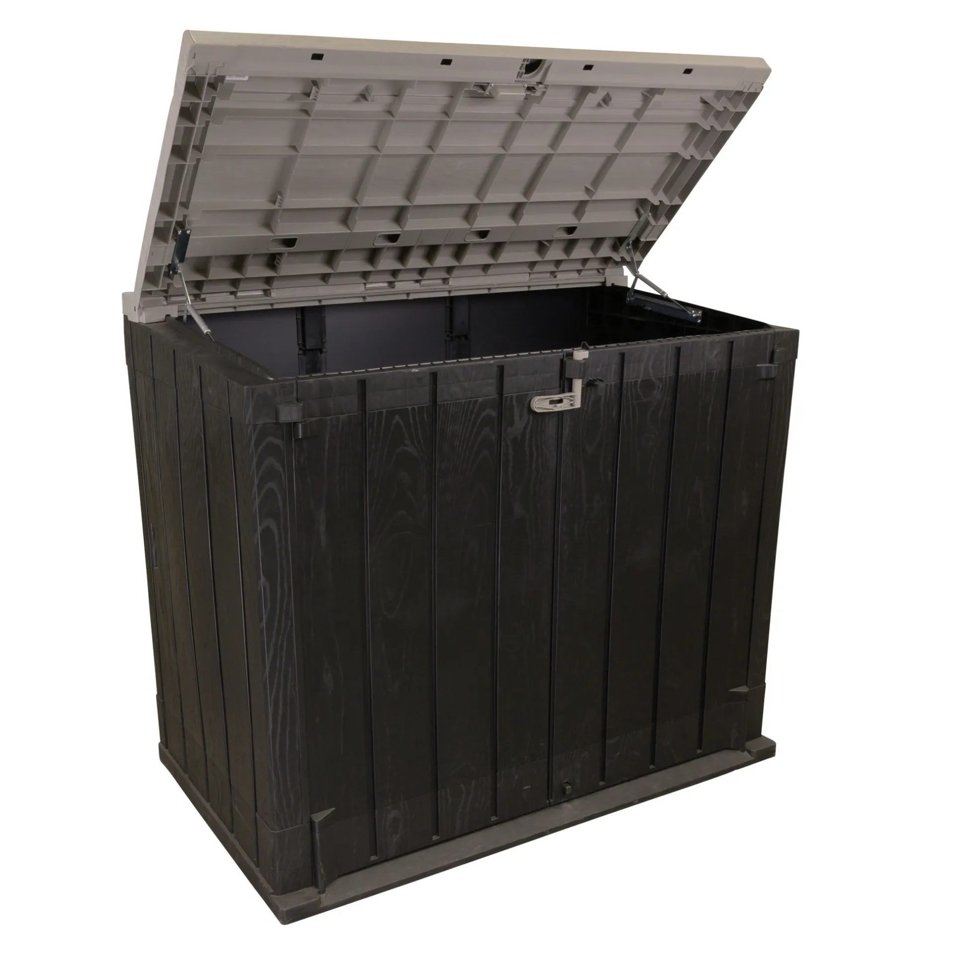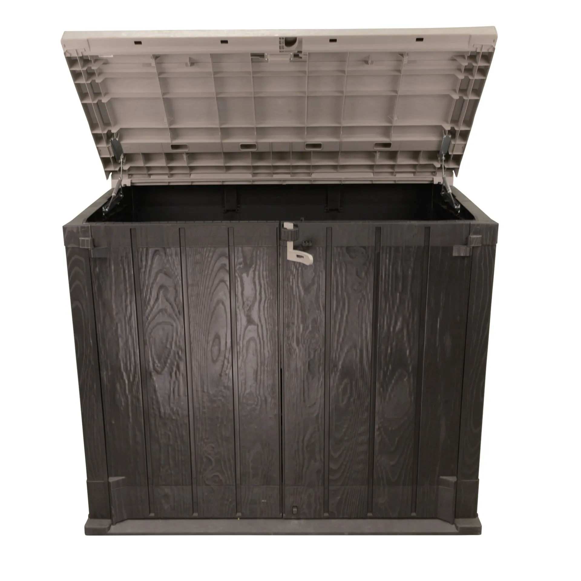 De Stora Way Plus XL Tuinschuur biedt een veelzijdige en ruime opbergoplossing voor kussens, speelgoed en tuingereedschap. De schuur is gemaakt van gerecycled polypropyleen, is UV- en weerbestendig, waterdicht en onderhoudsvrij. Met de slotfunctie kunt u waardevolle spullen veilig opbergen. Het ontwerp met twee deuren en een deksel zorgt voor gemakkelijke toegang.