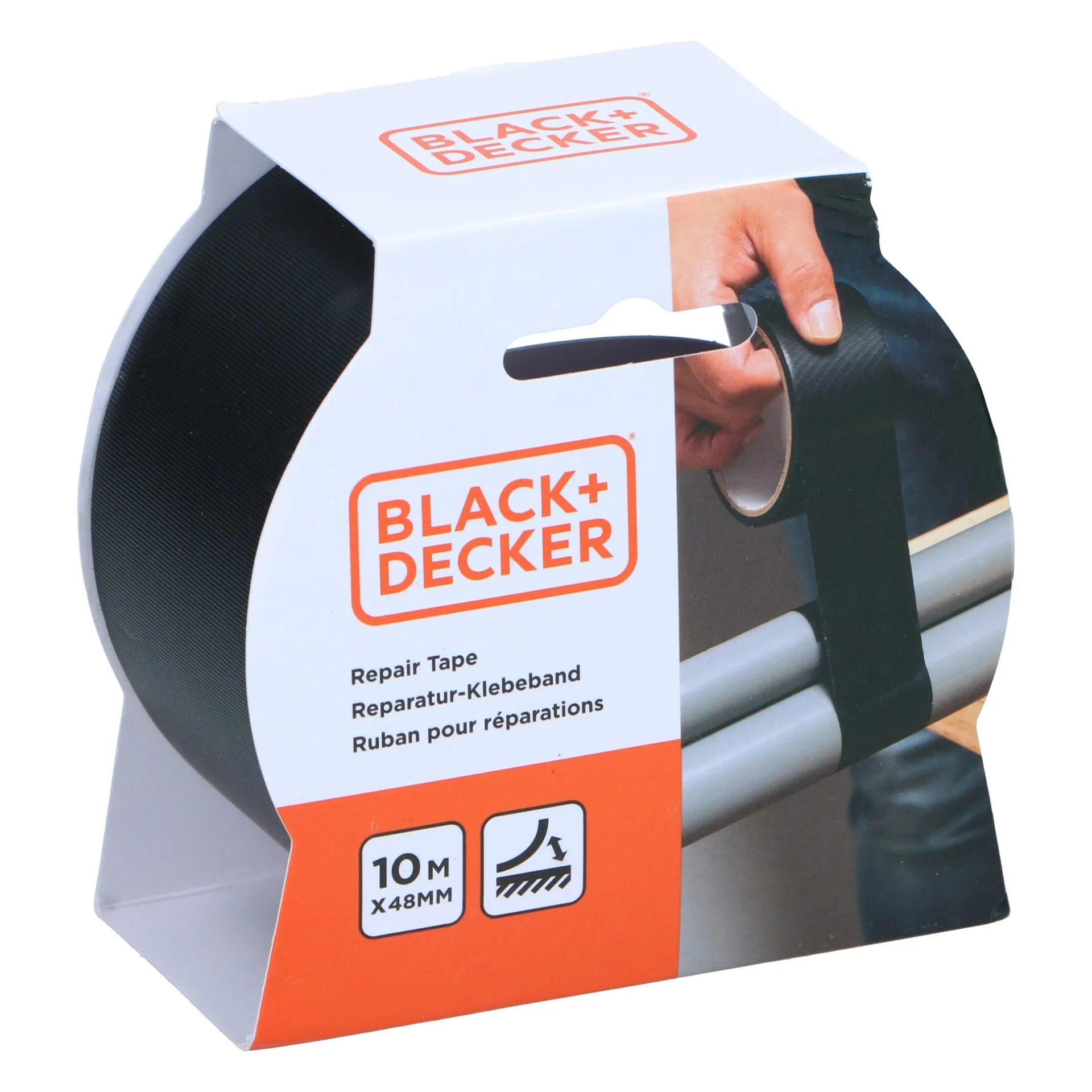 De zwarte tape van Black+Decker is sterk en veelzijdig, ideaal voor afdichten, bundelen en tijdelijke reparaties. Geschikt voor gebruik binnen en buiten.