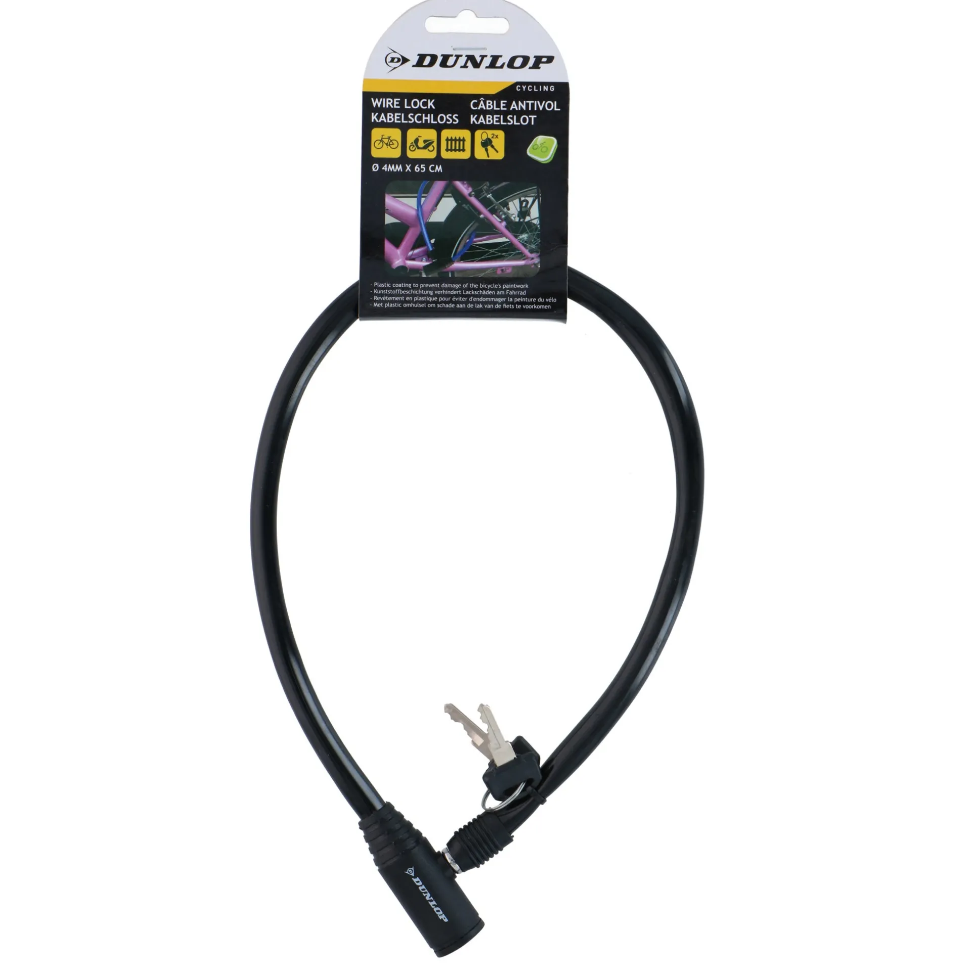 Dunlop kabelslot met sleutels, verkrijgbaar in verschillende kleuren. Geschikt voor fietsen en steps.