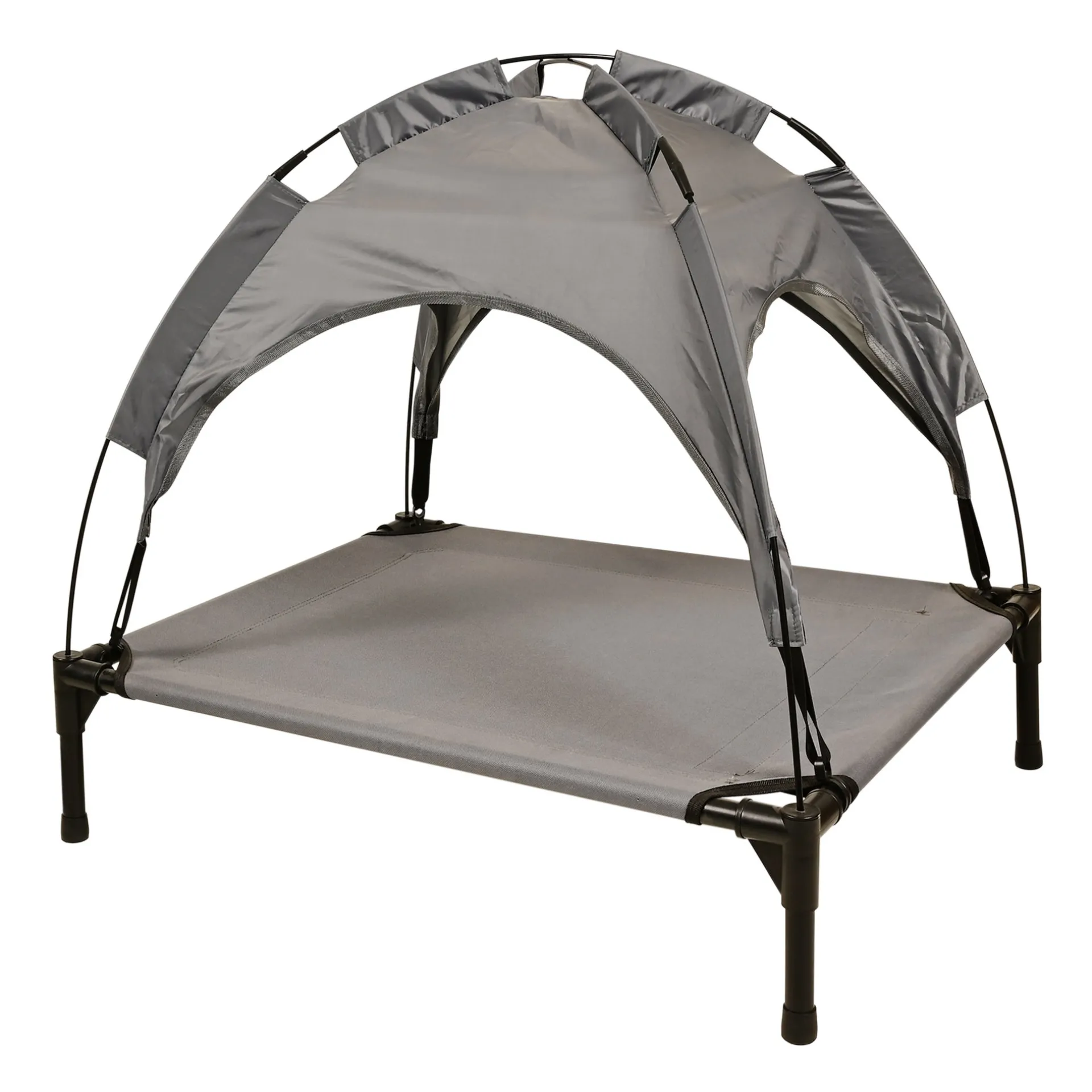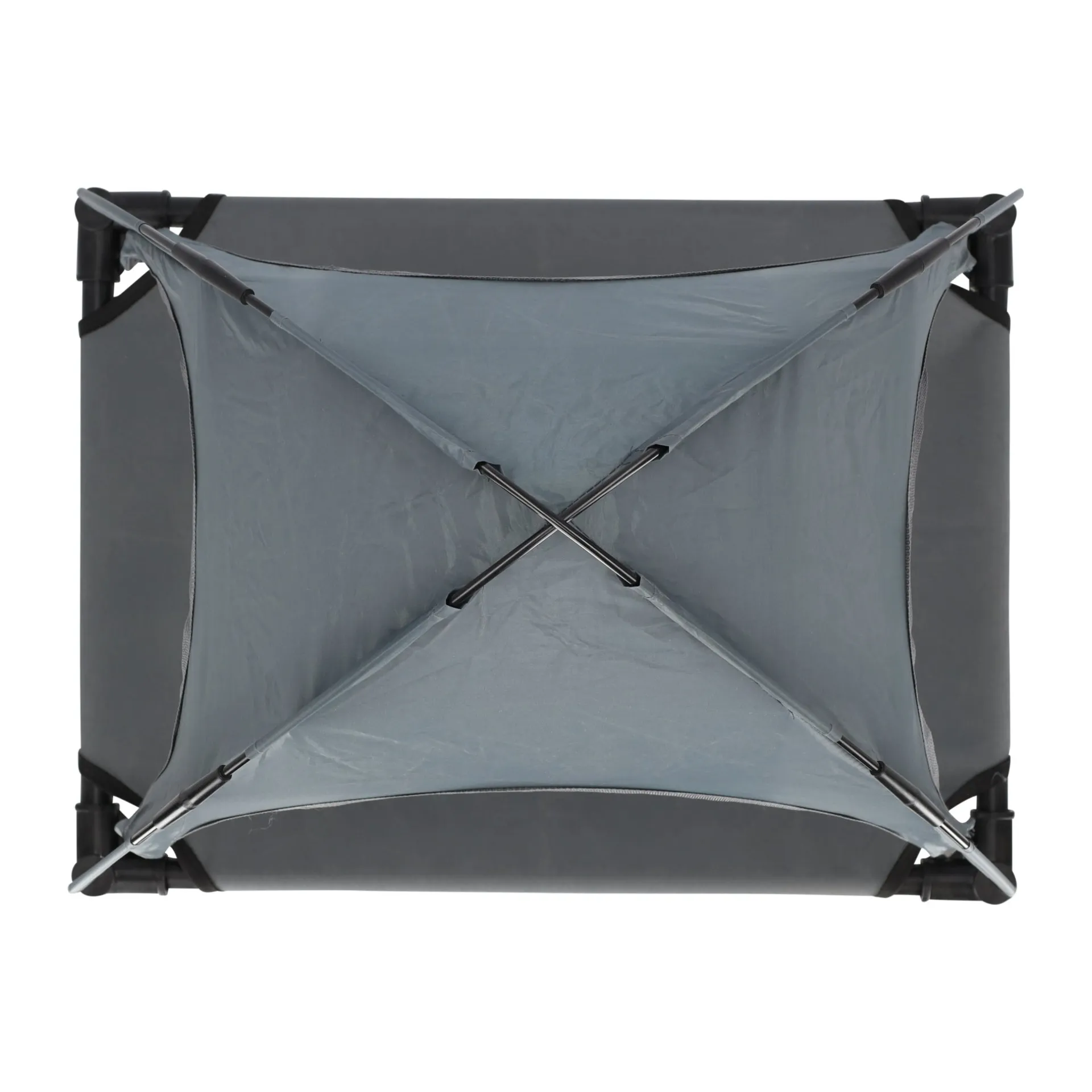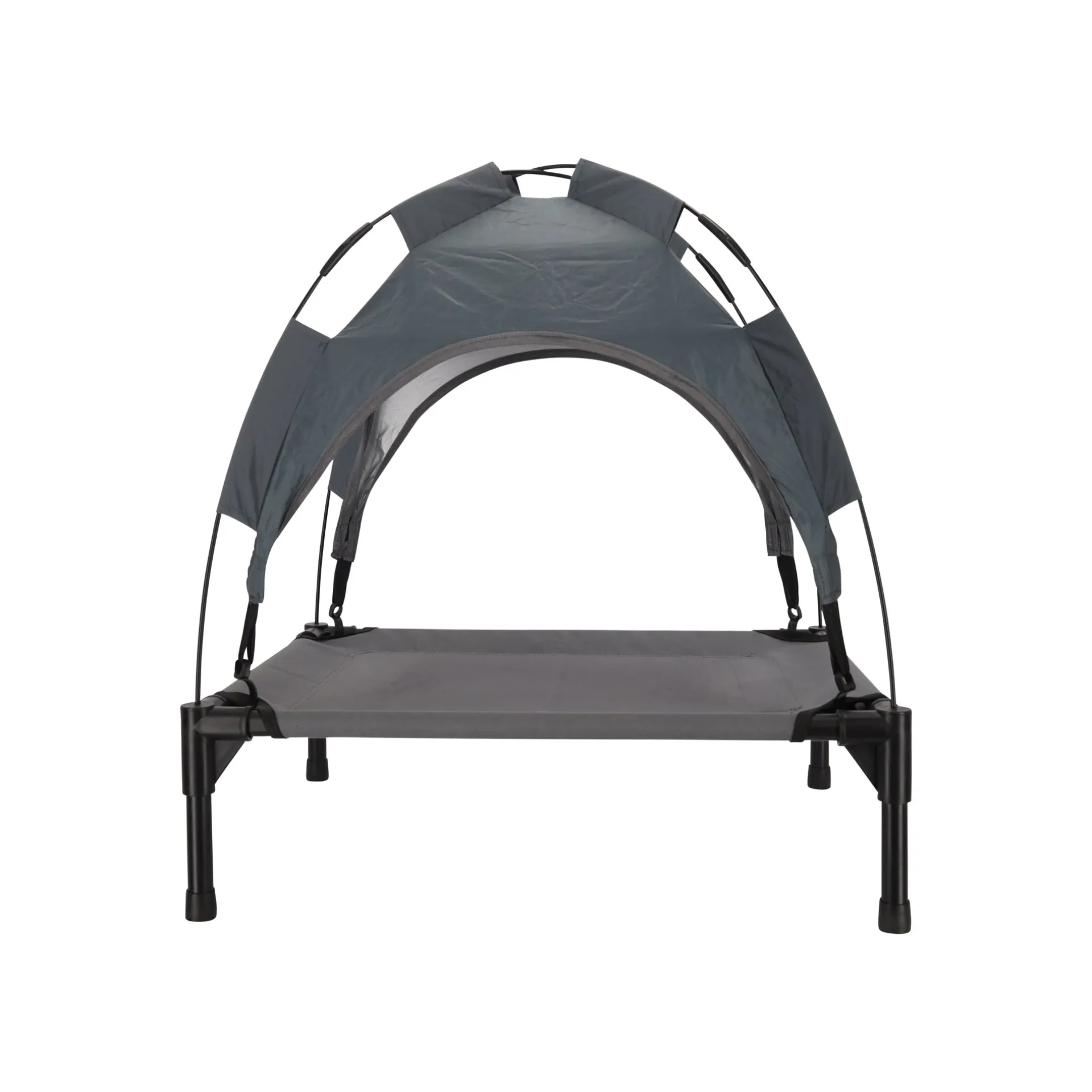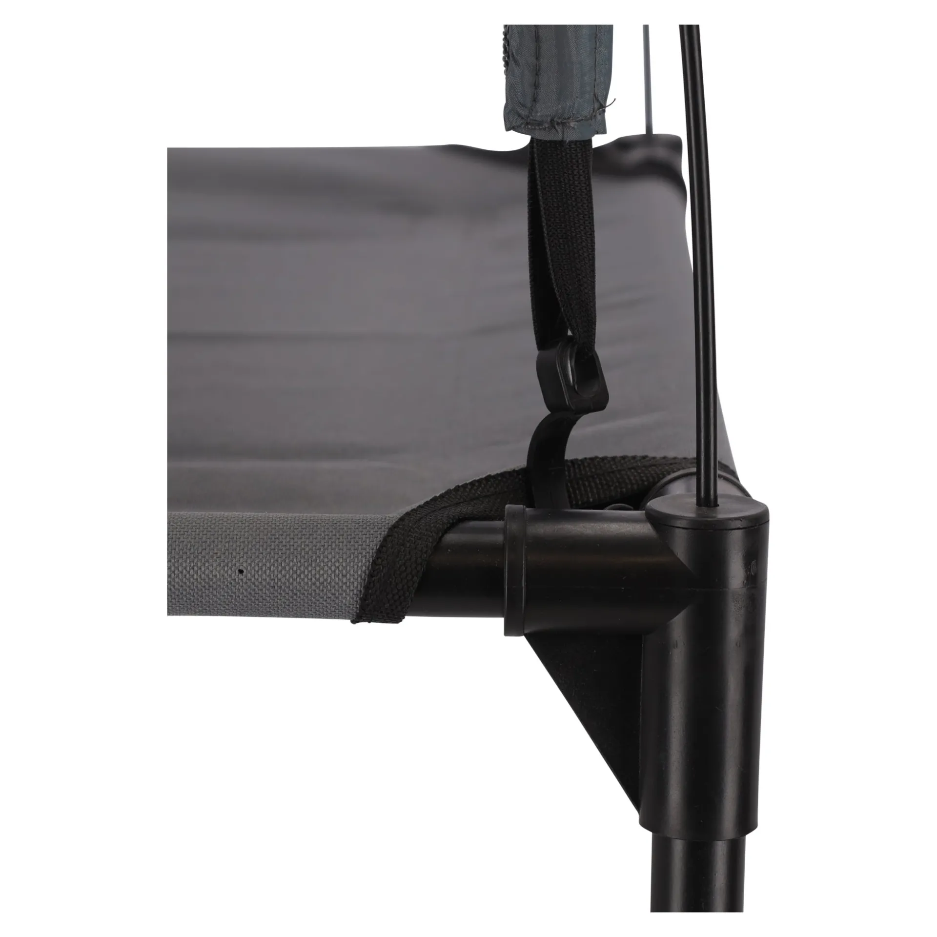 Hondenmand met afneembaar zonnedak, biedt bescherming tegen de zonnestralen en de verhoogde ligging zorgt voor een goede luchtcirculatie.