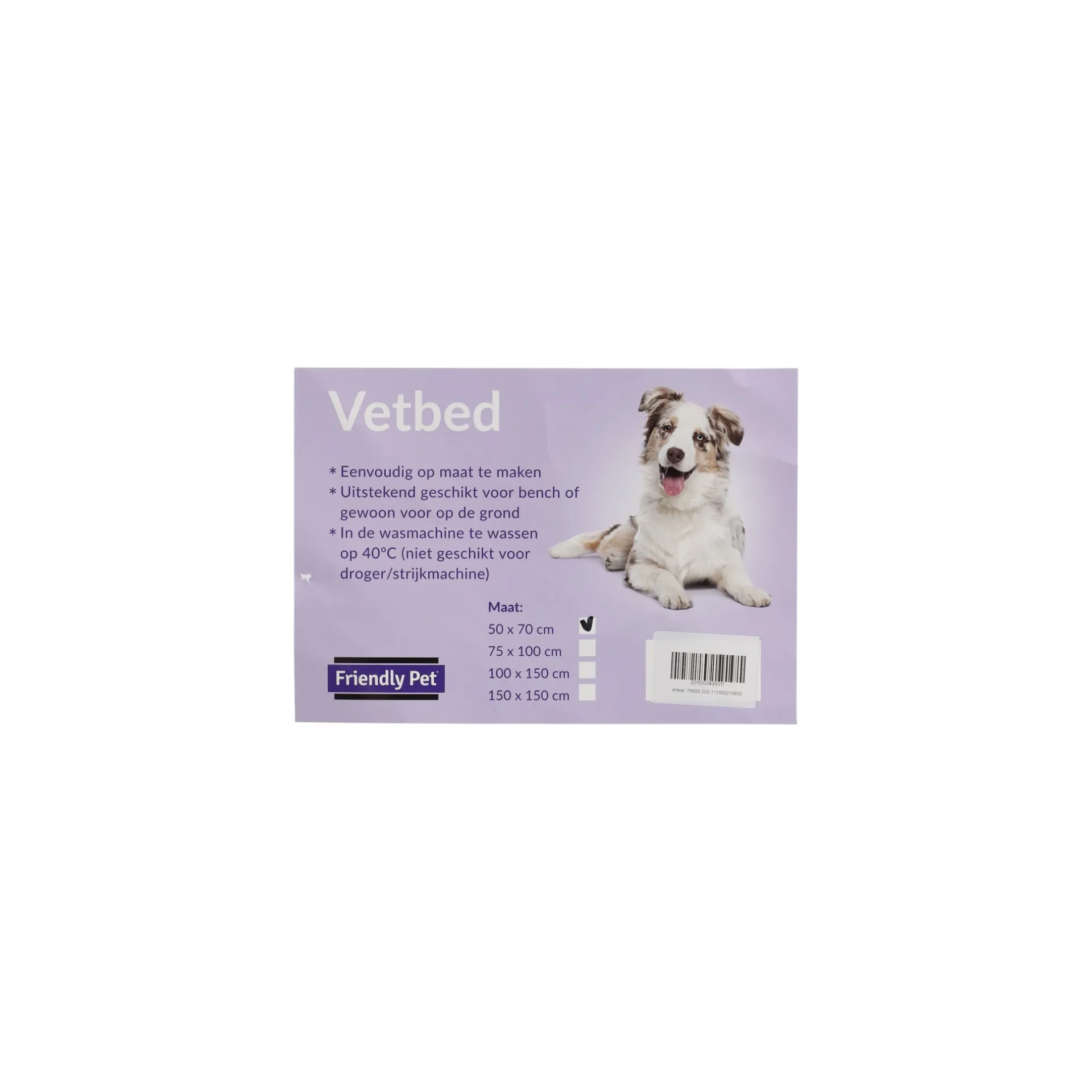 Het vetbed is een veelzijdige en comfortabele mat, speciaal ontworpen voor huisdieren zoals honden en katten. Met een afmeting van 50 cm breed en 70 cm lang is dit vetbed ideaal voor gebruik in benches, manden, of gewoon los op de vloer. Het biedt een warme, zachte plek voor je huisdier om te rusten en te ontspannen.