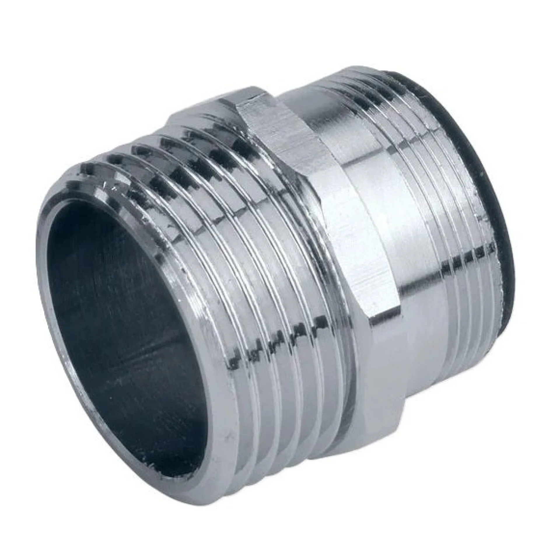 Dit is een metalen verloopnippel met aan beide kanten buitendraad, waarvan één zijde is voorzien van een afdichtring. Daarmee kun je twee schroefdraadmaten of aansluitingen met buitendraad met elkaar verbinden of verlengen, bijvoorbeeld tussen een kraan/fitting en een koppeling in een (tuin)watersysteem.