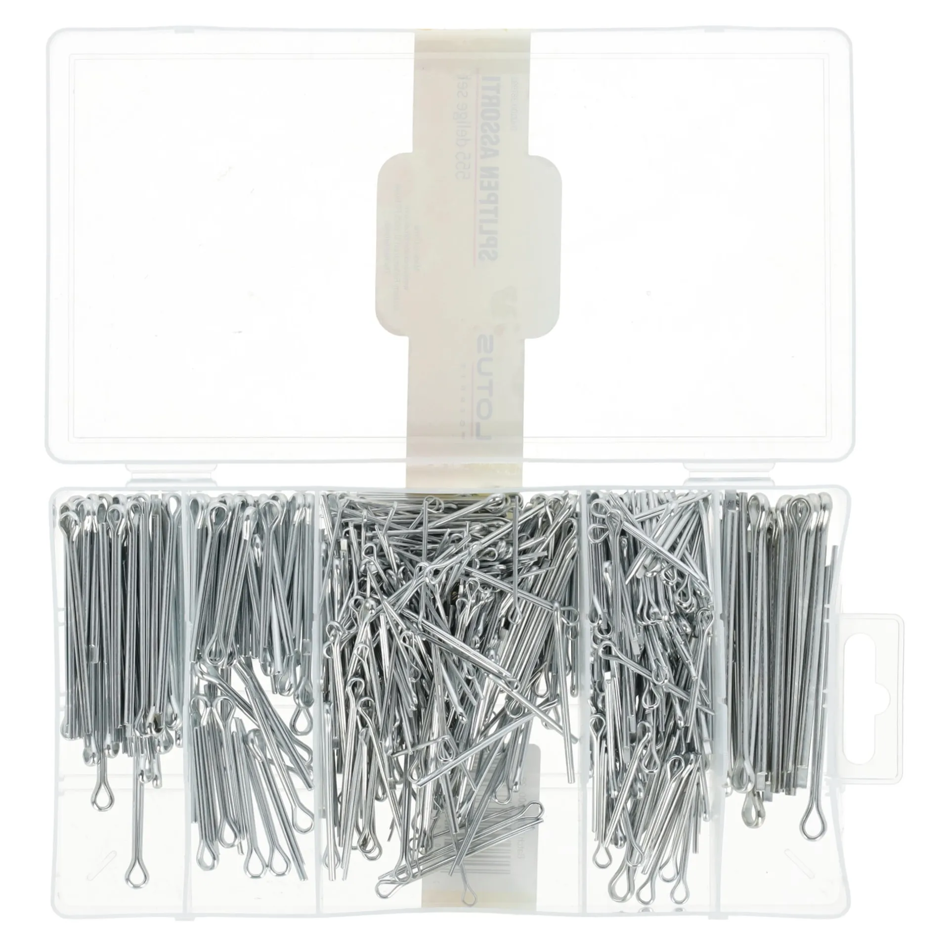 In deze 555-delige set van Lotus zitten diverse maten splitpennen overzichtelijk bij elkaar in een transparante doos, zodat je snel de juiste pen kunt pakken.