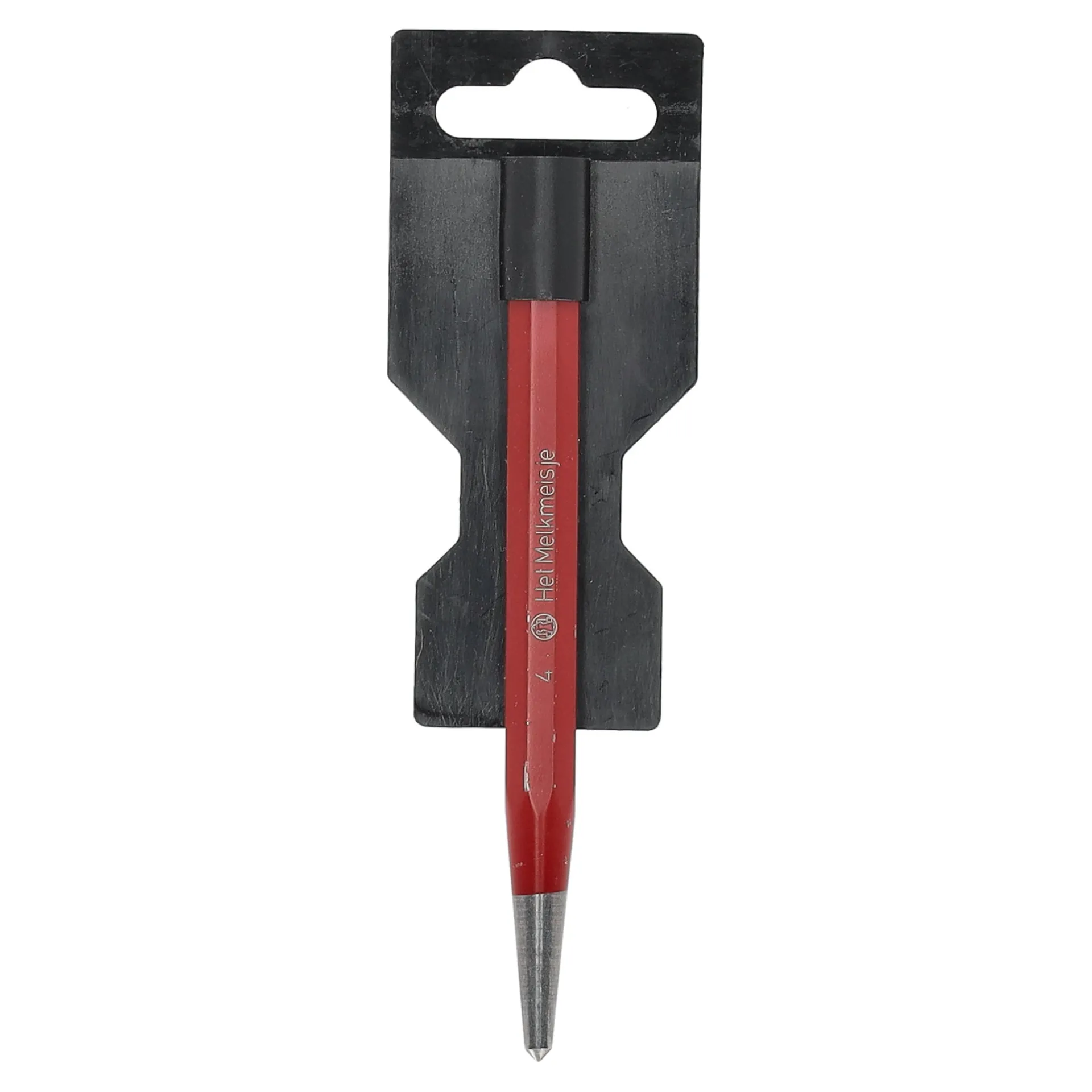 De gelakte centerpunt van melkmeisje, met afmetingen van 120 mm x 10 mm, is ontworpen om putjes te slaan in metaal als voorbereiding op het boren. Verkrijgbaar in een opvallende rode kleur.