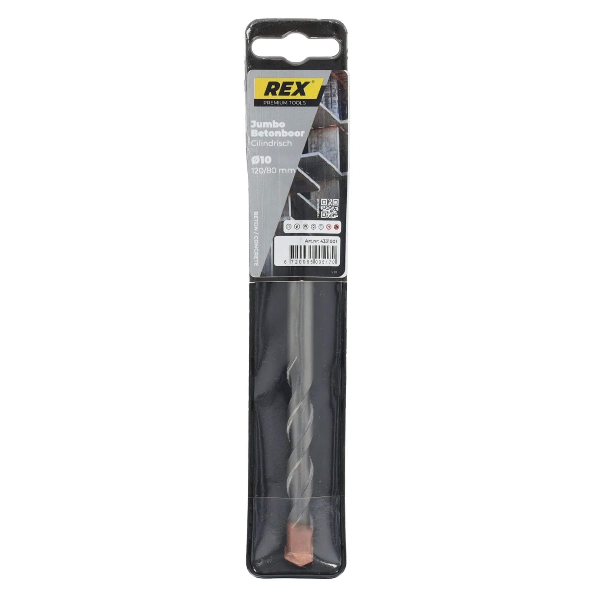 Deze Rex jumbo betonboor 10 mm is geschikt voor het boren in beton. De boor heeft een spiraalvormige uitvoering en een cilindrische schacht, wat zorgt voor stabiel en gecontroleerd boren. Door de langere uitvoering is deze betonboor geschikt voor nauwkeurig en dieper boren.