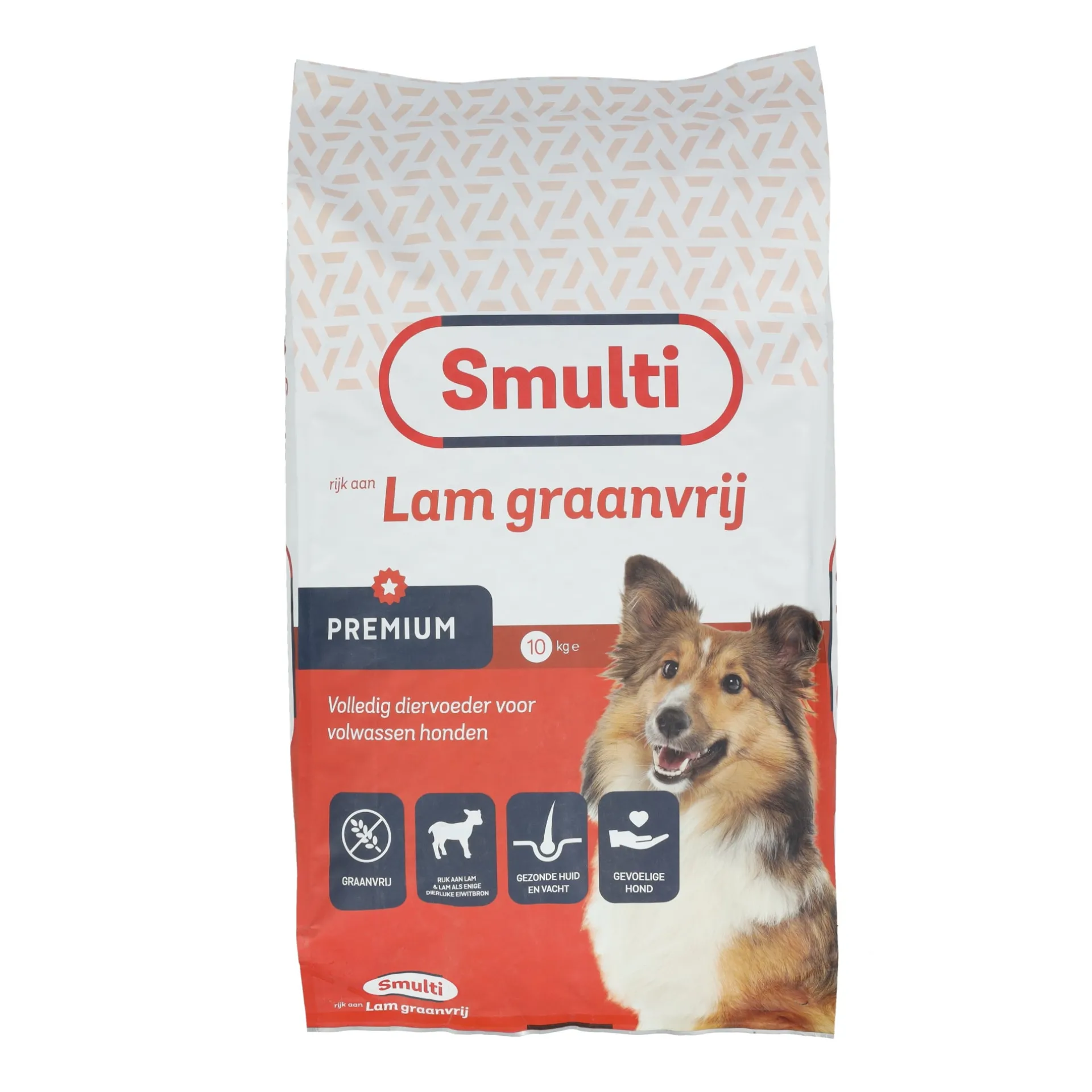 Graanvrij hondenvoer met lam van Smulti Premium, licht verteerbaar en gezond voor volwassen honden.