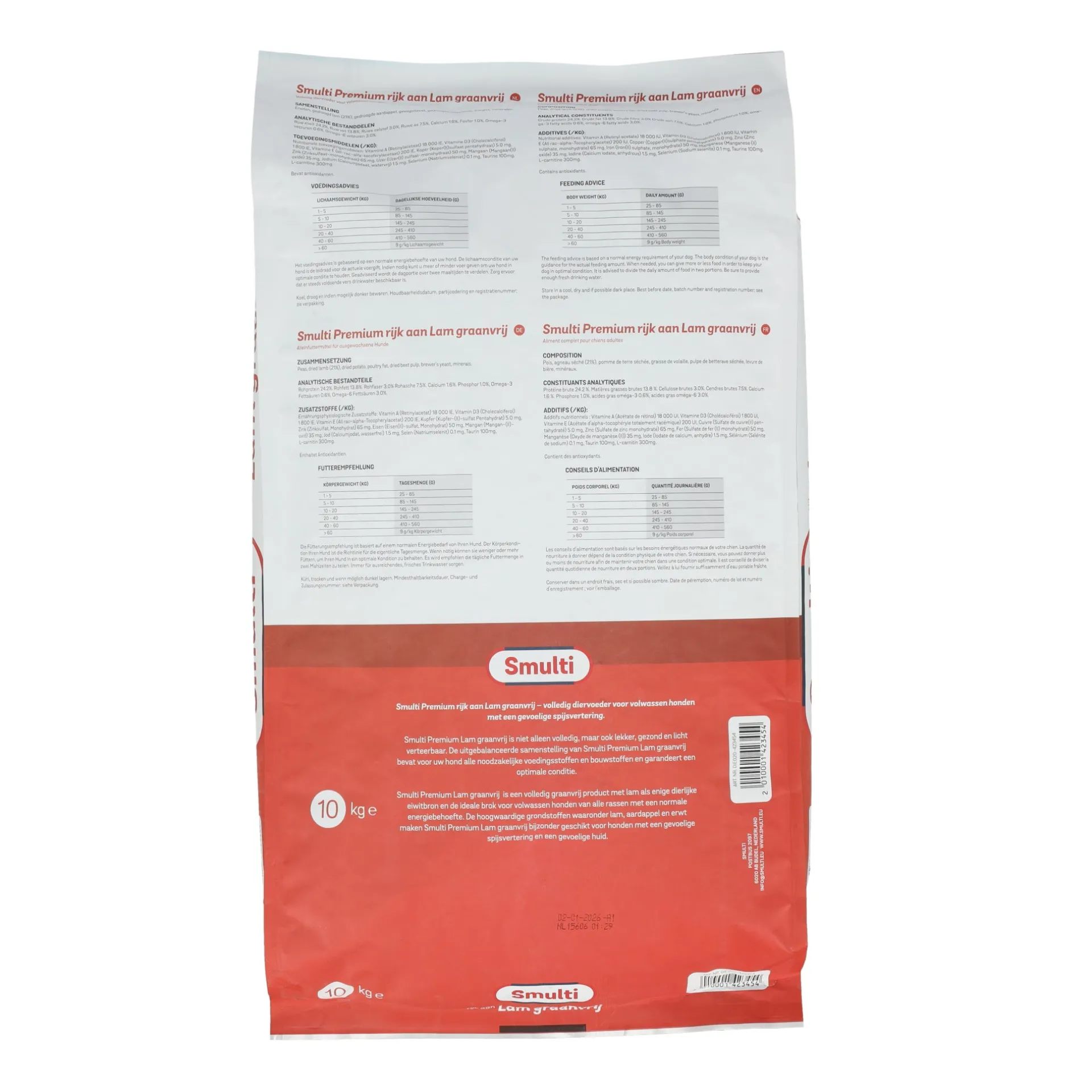 Productnaam:Hondenvoer Premium graanvrij lam 10kg Smulti