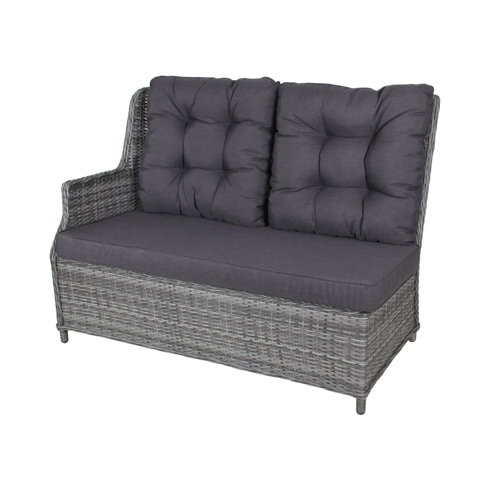 De Bank 2-zit Rechts Sicura Willow Grey is perfect voor wie een combinatie van stijl en comfort zoekt. Het aluminium frame is volledig roestvrij, en het vlechtwerk is UV- en weerbestendig. De comfortabele kussens in luxe geweven stof en de Willow Grey kleur maken deze bank een duurzame en stijlvolle keuze.