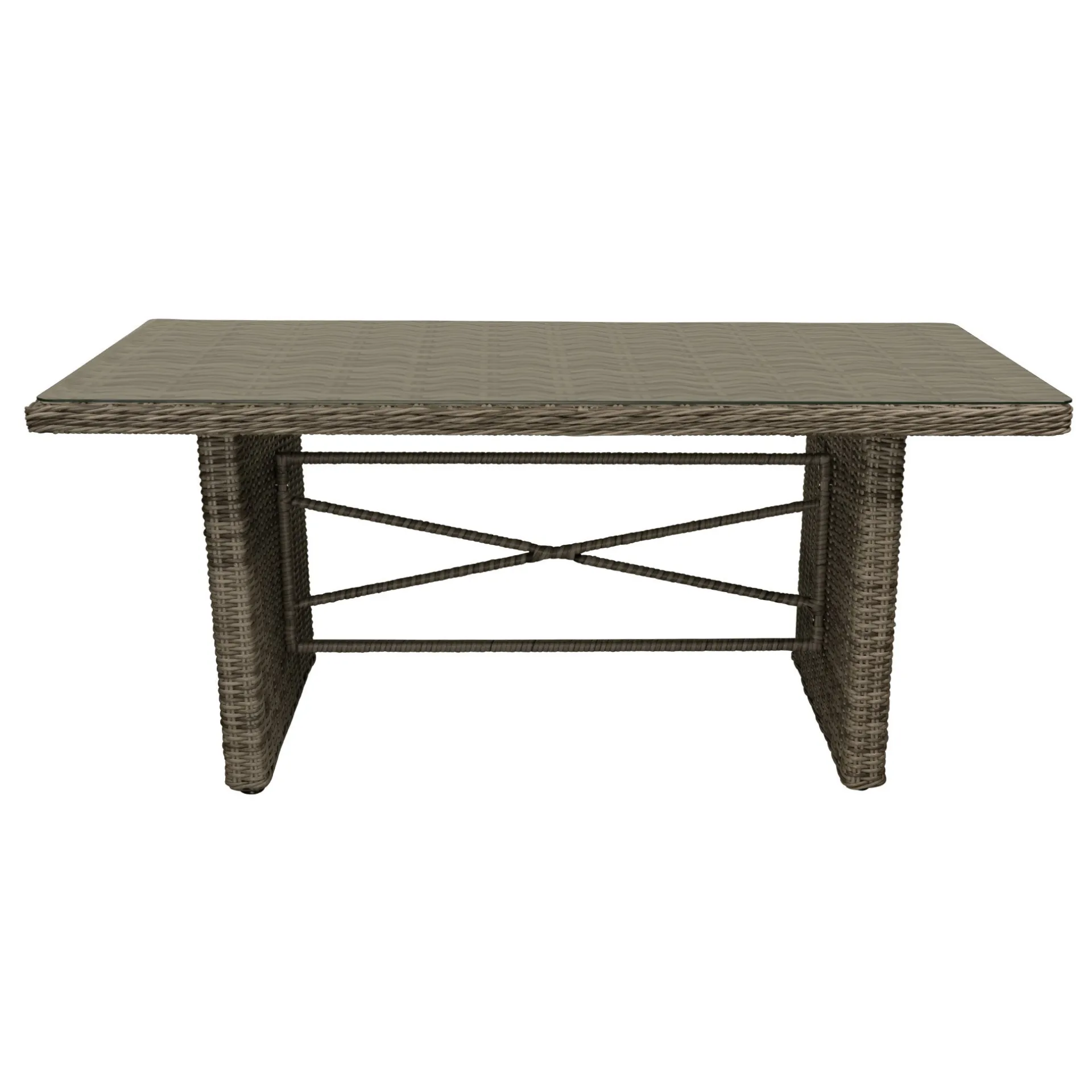 Deze stijlvolle tafel heeft een stevig aluminium frame en een duurzaam polywood blad, ideaal voor buitengebruik. Het hoogwaardige, UV- en weersbestendige kunststof vlechtwerk zorgt voor een lange levensduur en eenvoudig onderhoud. Perfect voor elke tuin of terras.
