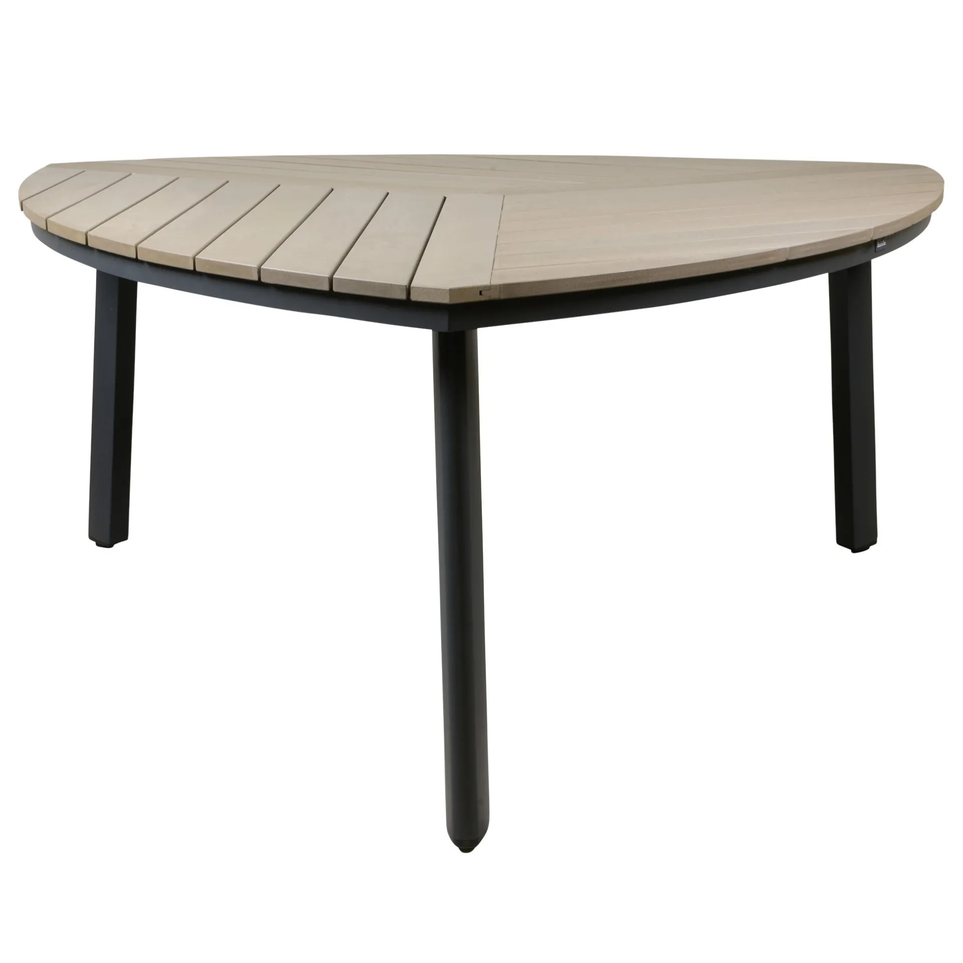 De Fidenza tafel is een moderne driehoekachtige tafel, geschikt voor zowel binnen als buiten. Het aluminium frame maakt de tafel licht en roestvrij, terwijl het pollywood blad zorgt voor een stevige en onderhoudsvriendelijke afwerking. Omdat polywood deels hout bevat, kan het vlekken van eten en drinken opnemen. Om dit te voorkomen en het materiaal in topconditie te houden, raden we u aan om Polywood Protector en Reiniger te gebruiken. Lees de handleiding voor meer informatie.