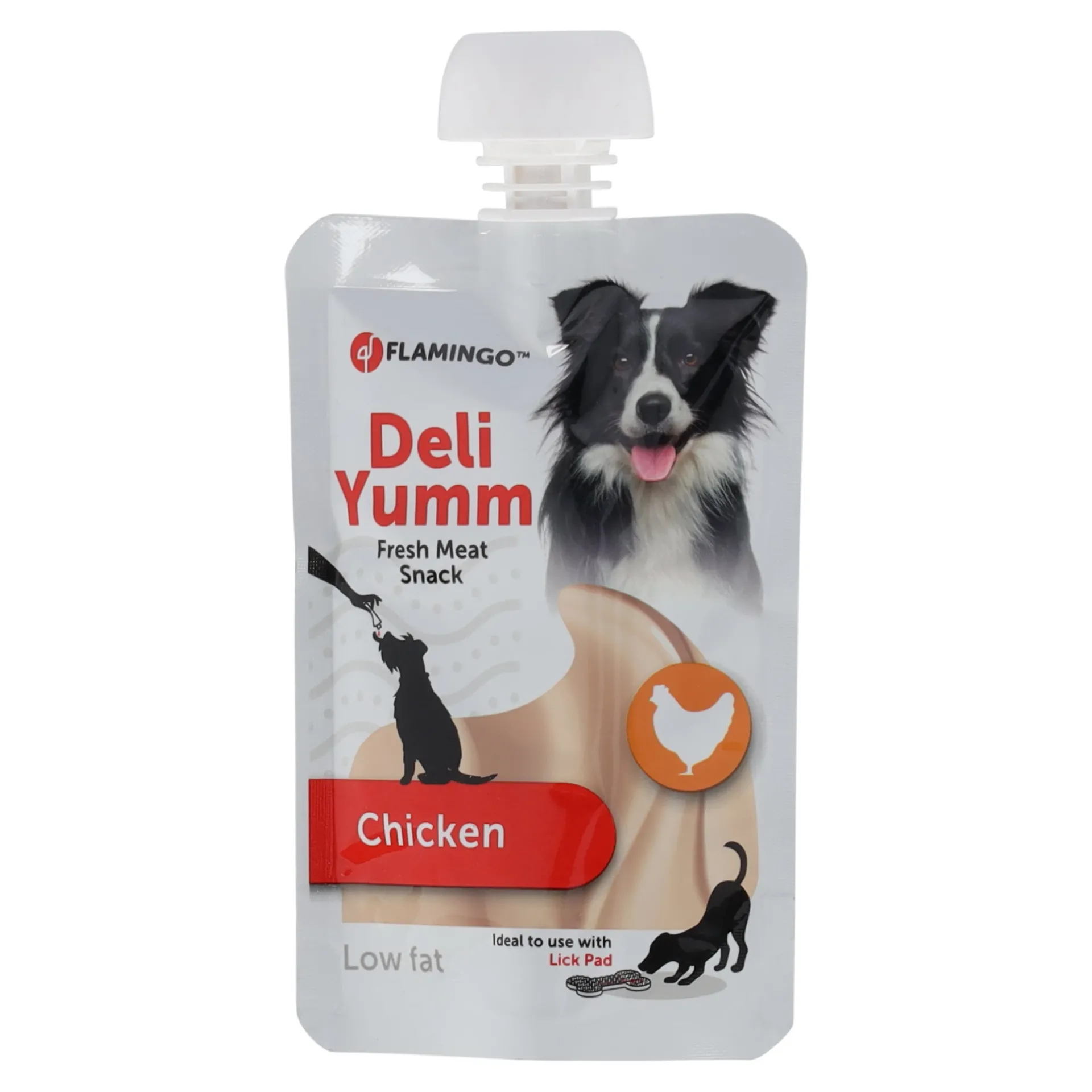 Verwen jouw trouwe viervoeter met de licht verteerbare Deli Yumm hondensnack, gemaakt van overheerlijke kip. De handige tube maakt doseren een fluitje van een cent en is perfect te combineren met een likmat of KONG classic. Laag in vetten en gemaakt van vers en mals vlees, ideaal als tussendoortje of beloning. Geschikt voor trainingen en handig voor onderweg. Ontdek ook de andere smaken van Deli Yumm en maak jouw hond dolgelukkig! Laat de hond niet alleen met kauwmateriaal. Zorg voor vers water.