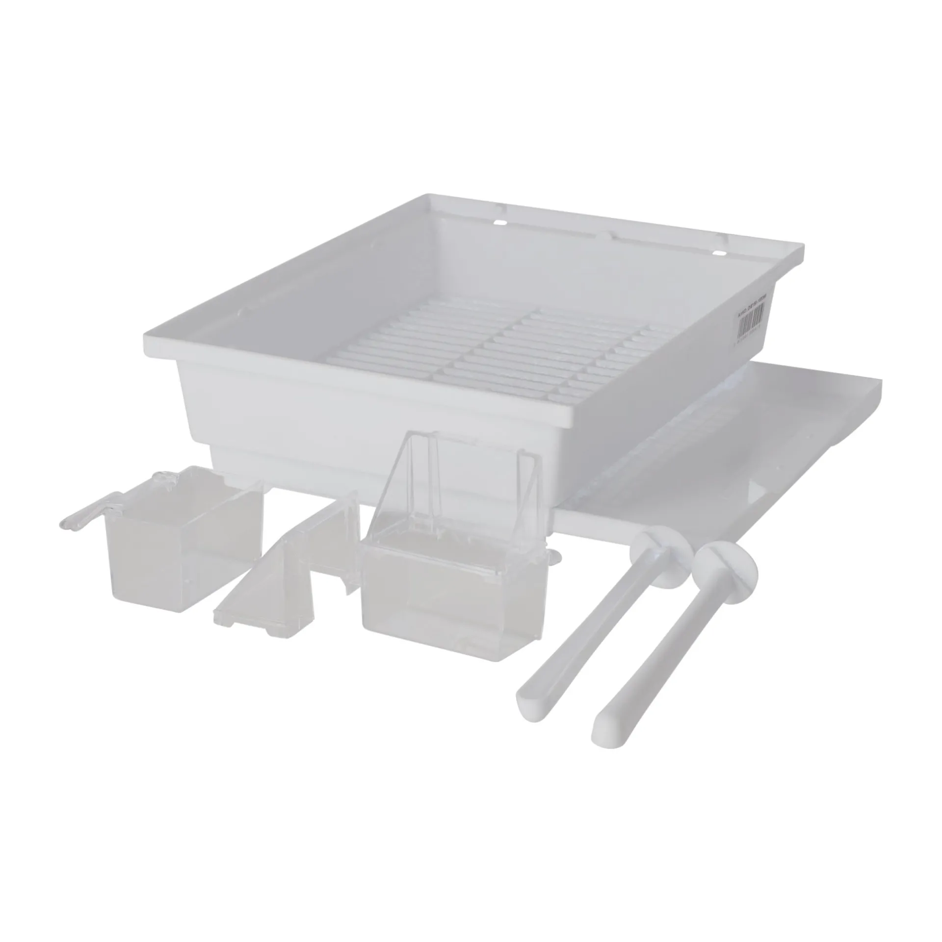 De is een compacte en functionele vogelkooi in een. Deze kooi is perfect geschikt voor kleine vogels en biedt een comfortabele leefruimte. Het ontwerp omvat zitstokken, voer- en drinkbakjes, en een uitneembare bodemlade voor eenvoudig schoonmaken.