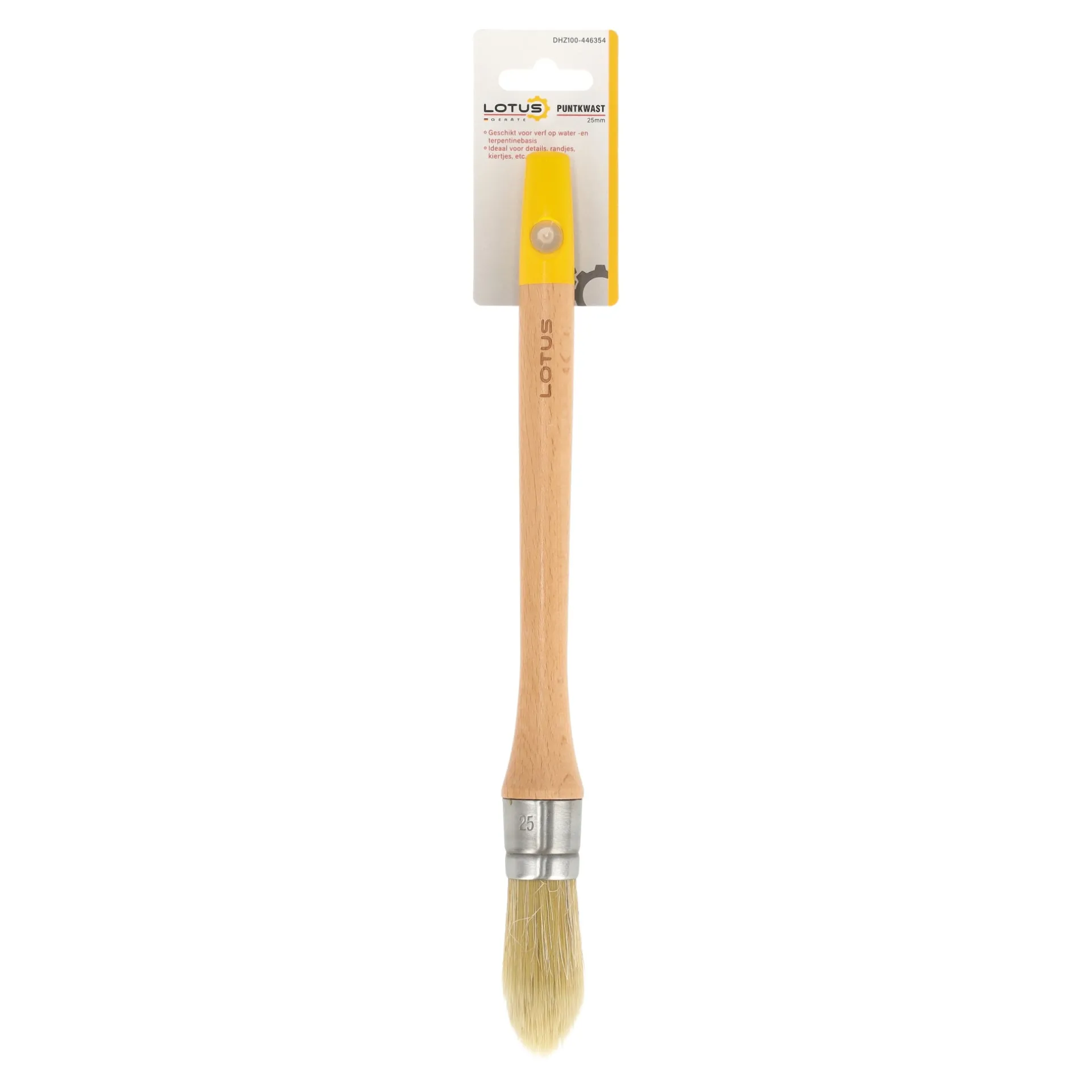 Puntkwast van Lotus met een breedte van 25 mm. Universeel inzetbaar voor nauwkeurig schilderwerk, zoals randen, hoeken en kleine details. De lange houten steel zorgt voor goede controle tijdens het werken, ook op moeilijke te bereiken plekken.