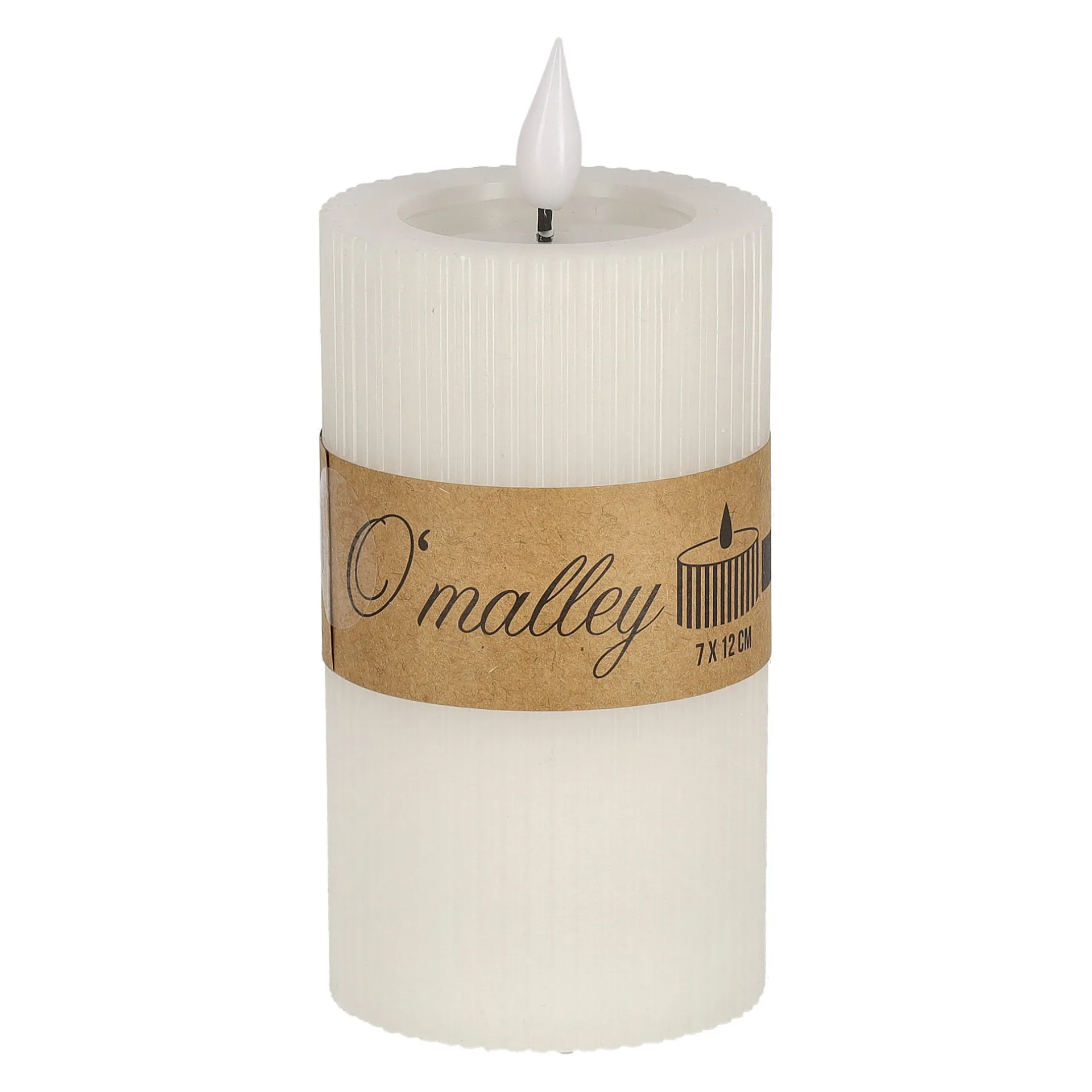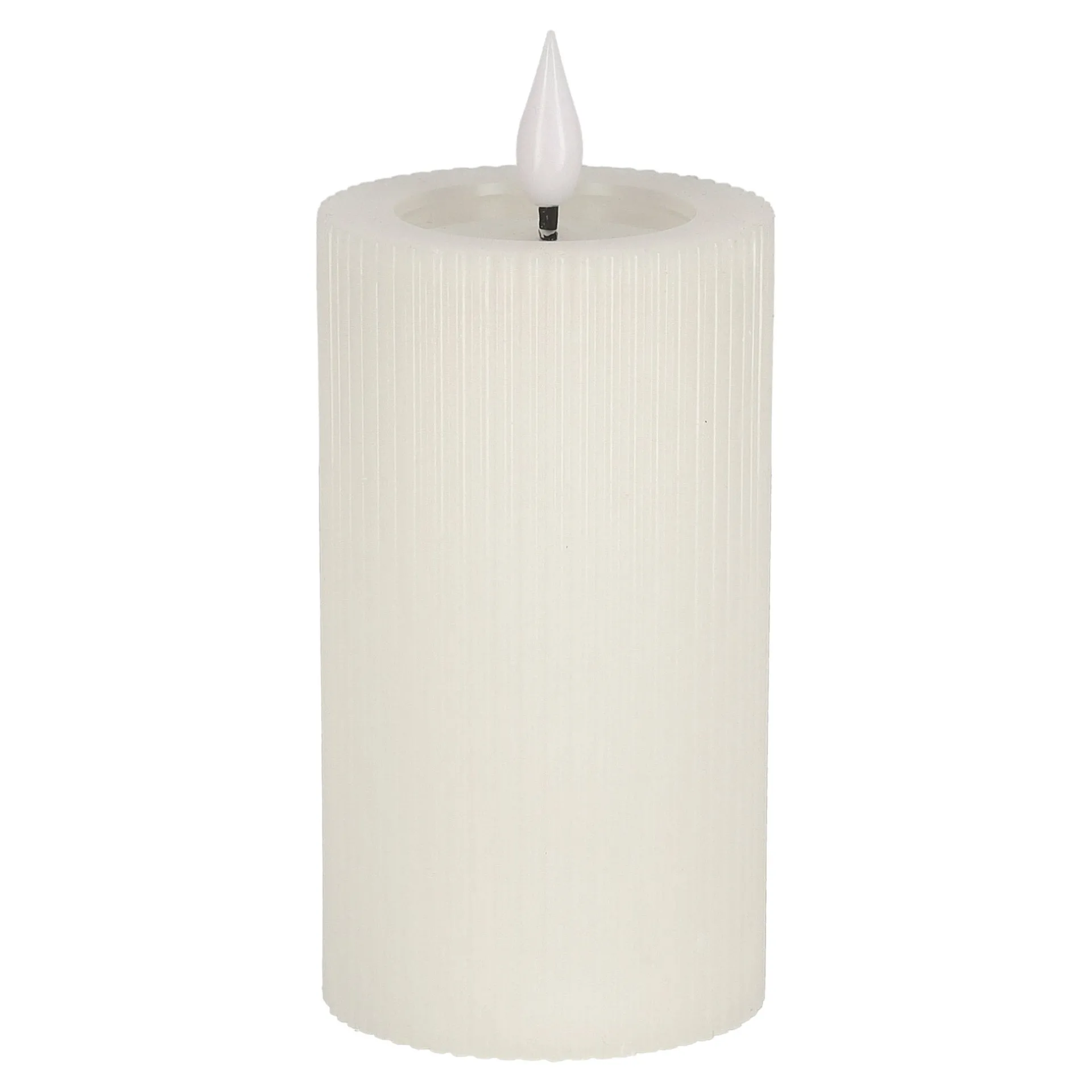 LED-kaars met ribbelstructuur en smeltlook, geeft een realistisch flikkerend licht zonder vlam, werkt op batterijen. Veilig, geurloos en perfect voor een warme sfeer in huis.