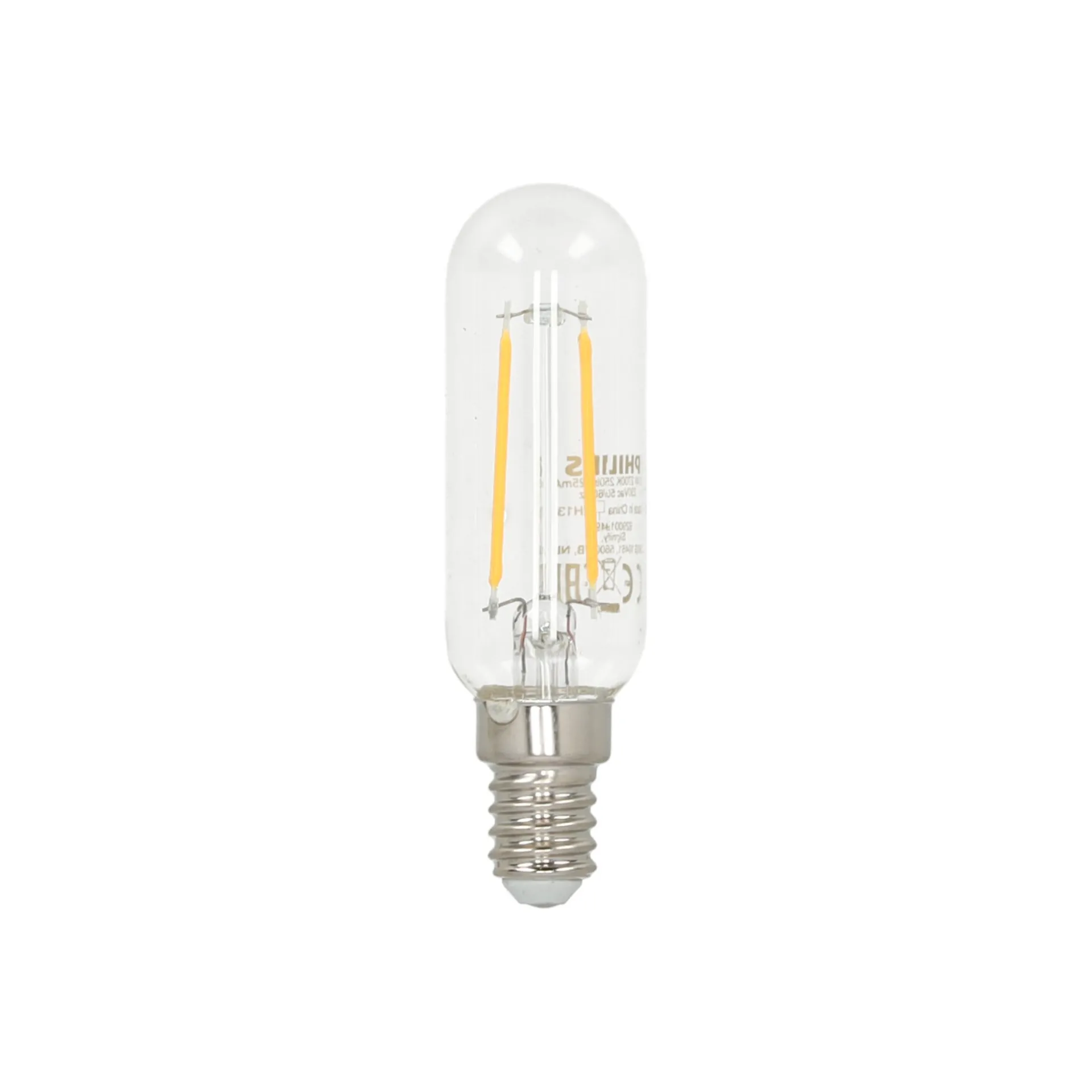 Philips T25 LED-lamp met E14-fitting, ontworpen voor koelkasten en afzuigkappen. Met een lichtopbrengst van 250 lumen en een vermogen van 2.1 watt, biedt deze lamp warm wit licht (2700K) en is zeer energiezuinig.