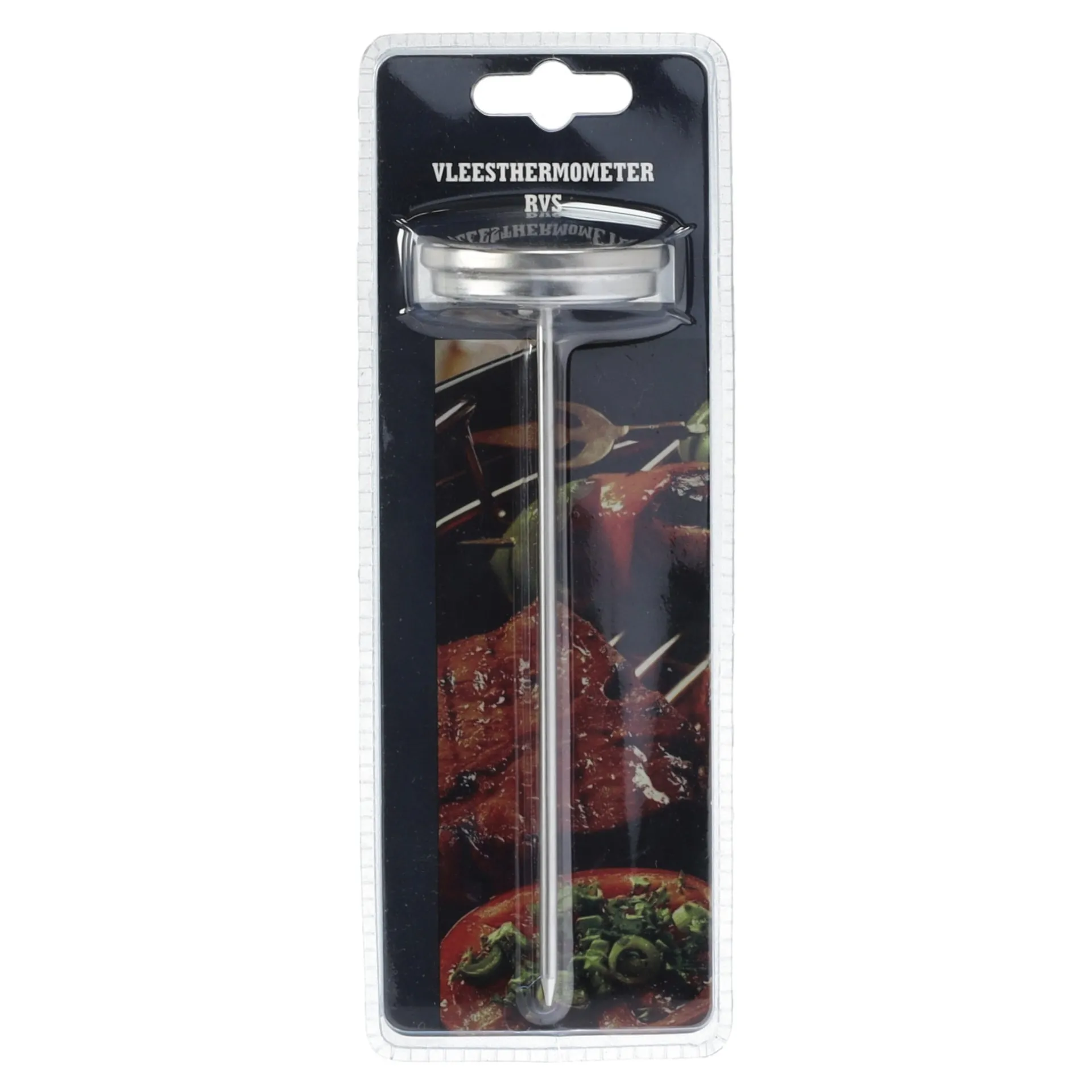 De roestvrijstalen vleesthermometer is een onmisbaar hulpmiddel voor het bereiden van perfect gegaard vlees. Deze thermometer geeft nauwkeurig de kerntemperatuur aan, zodat je gemakkelijk kunt controleren of je vlees de gewenste gaarheid heeft bereikt. Gemaakt van hoogwaardig RVS, is de thermometer duurzaam, hygiƫnisch en eenvoudig schoon te maken.