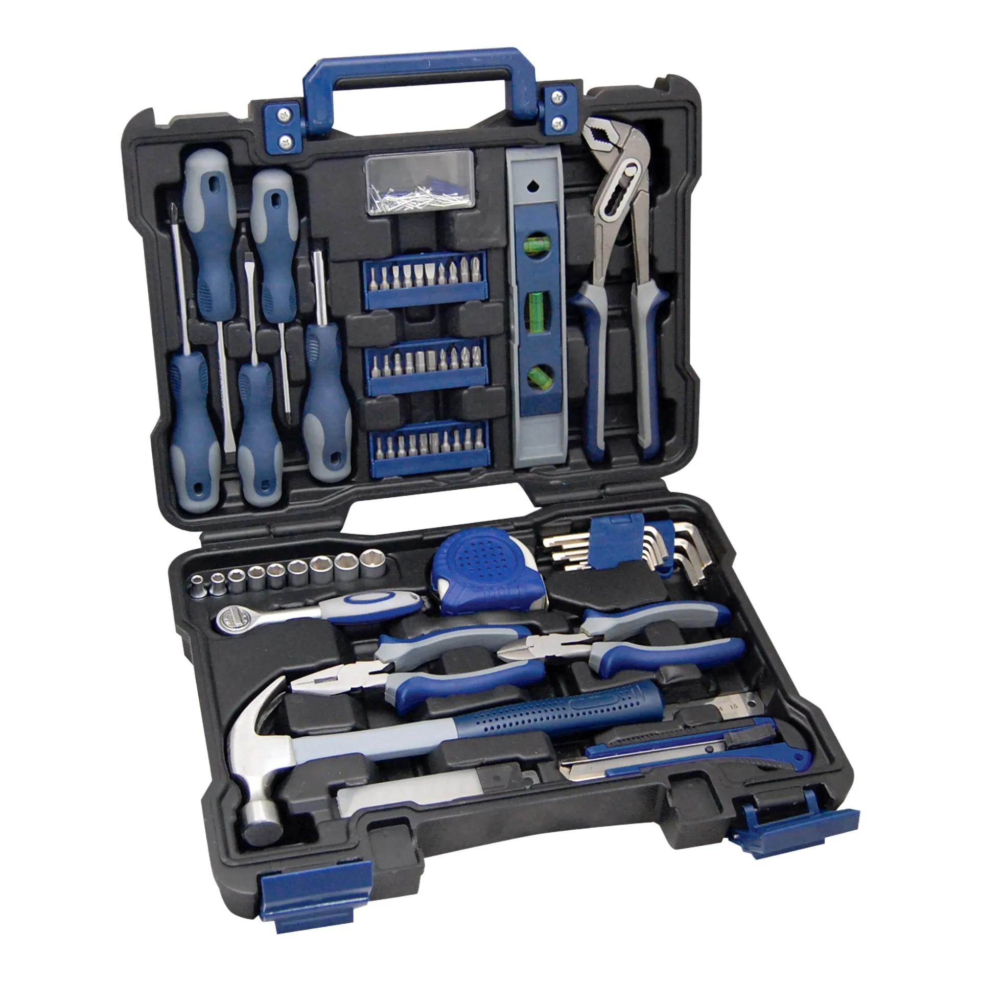 Een compleet uitgeruste gereedschapskoffer is een must-have voor professionals en doe-het-zelvers. De inhoud is overzichtelijk georganiseerd met aparte vakken in de bodem en het deksel, waardoor alle tools netjes op hun plek blijven liggen. Dit maakt het eenvoudig om snel het juiste gereedschap te vinden en na gebruik op de juiste plek terug te leggen.