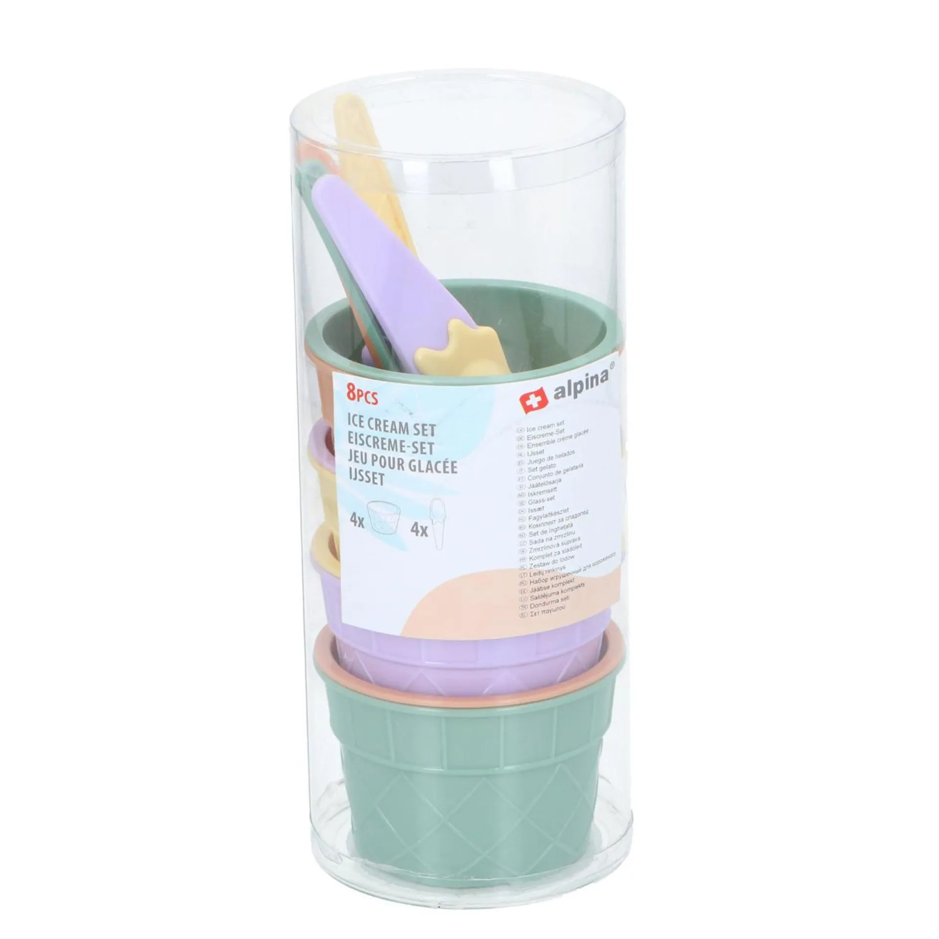 Ijsset met handige accessoires voor het serveren of bereiden van ijs. Leuk en praktisch voor thuis of op feestjes.