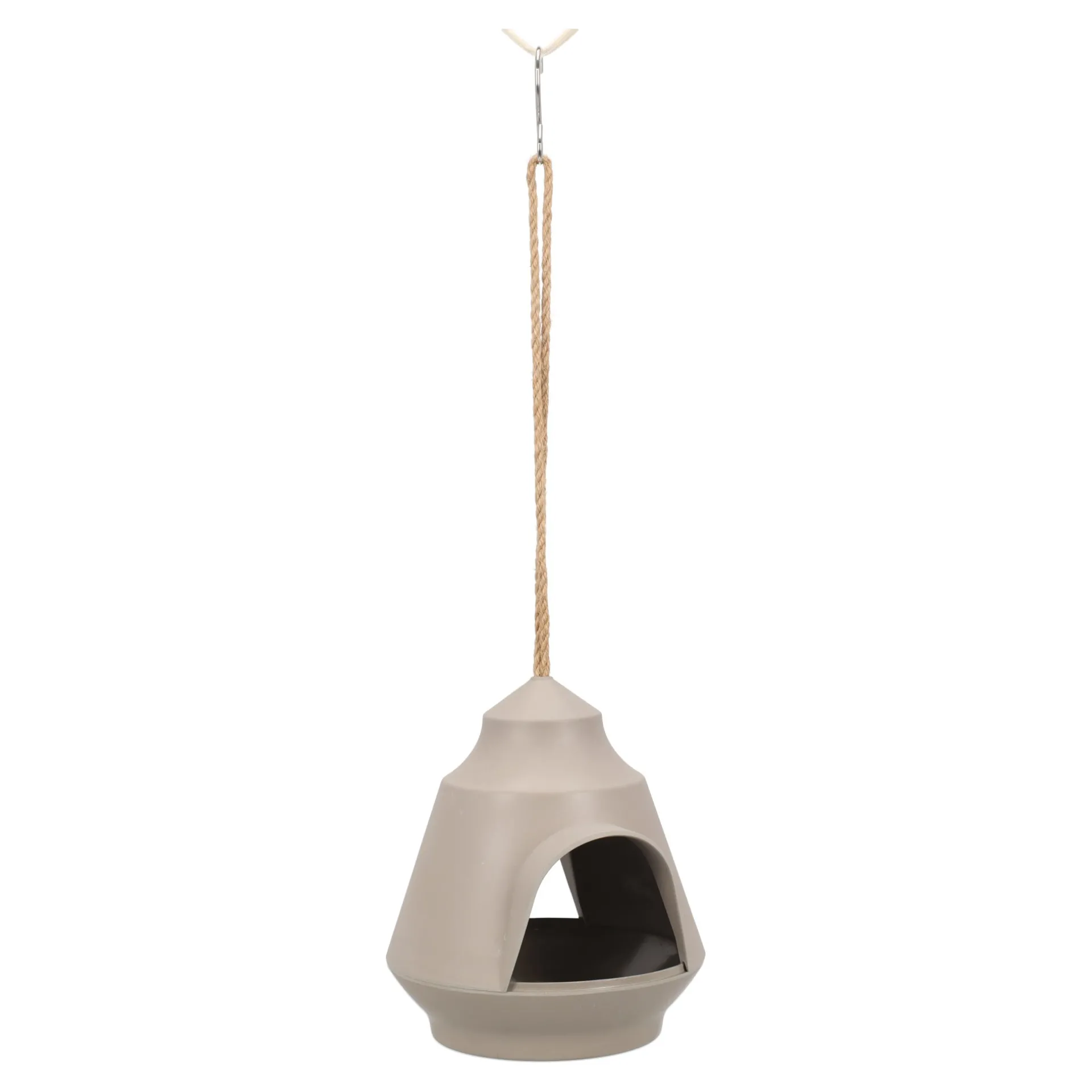 Stijlvol vogelvoederhuis van 18 cm in taupe kleur.