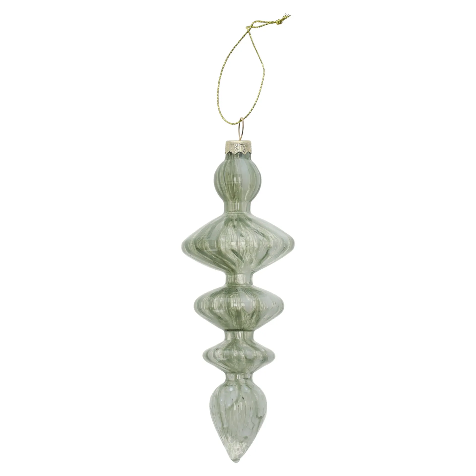 Groene pegelhanger van 5 x 15 cm met een sierlijk, gelaagd model. Geeft een subtiele kleurtoets wanneer je hem ophangt aan een tak, krans of decoratieve boom.