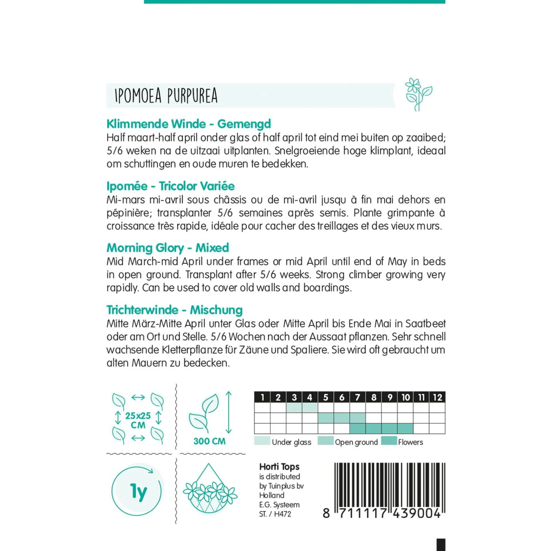 De Ipomoea Mix is een klimmende winde met een kleurrijke variatie aan bloemen. Deze snelgroeiende klimplant zorgt voor een prachtige, zomerse uitstraling langs rekken, pergola’s of schuttingen.