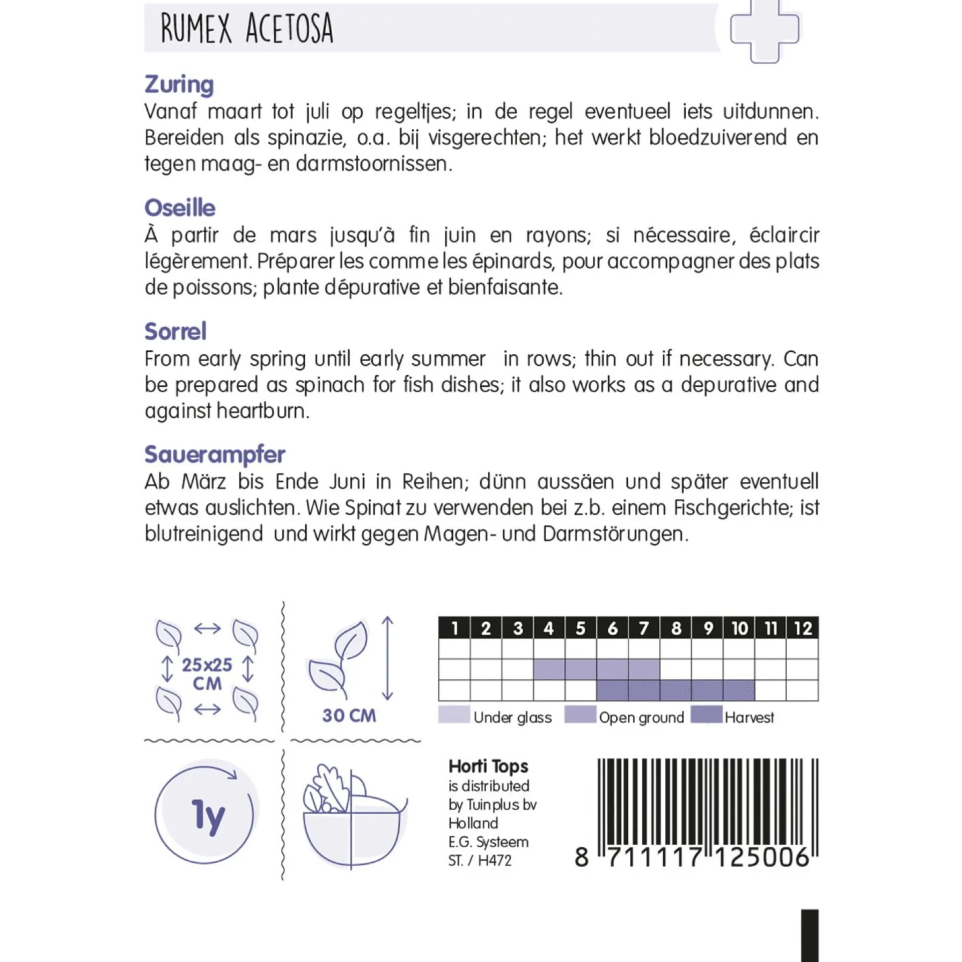 Vanaf maart tot juli op regeltjes; in de regel eventueel iets uitdunnen. Bereiden als spinazie, o.a. bij visgerechten; het werkt bloedzuiverend en tegen maag- en darmstoornissen.