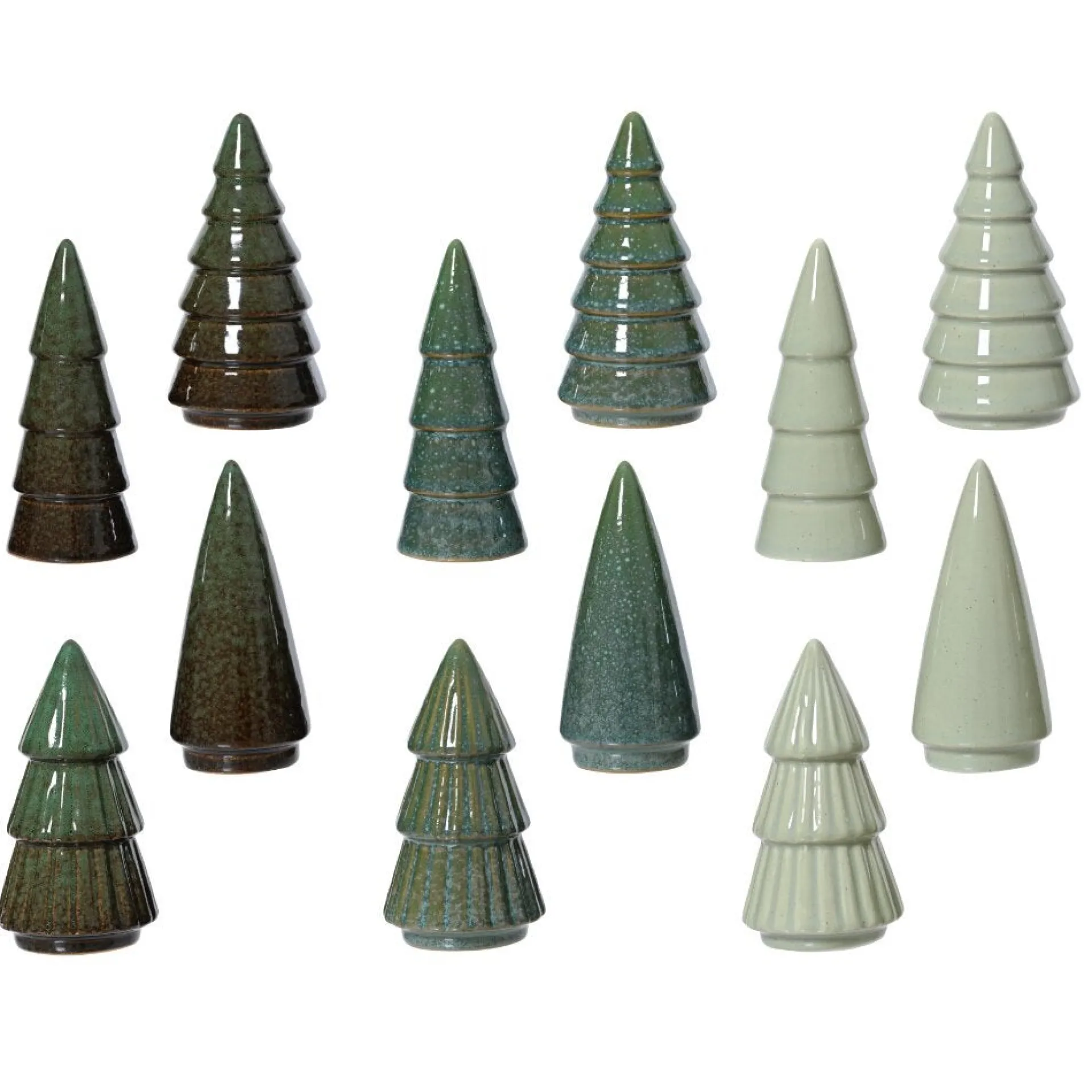Porseleinen kerstboom in groene kleur met een hoogte van 10 cm. Deze kleine boom zorgt voor een sfeervolle en natuurlijke kerstdecoratie op tafel of vensterbank.