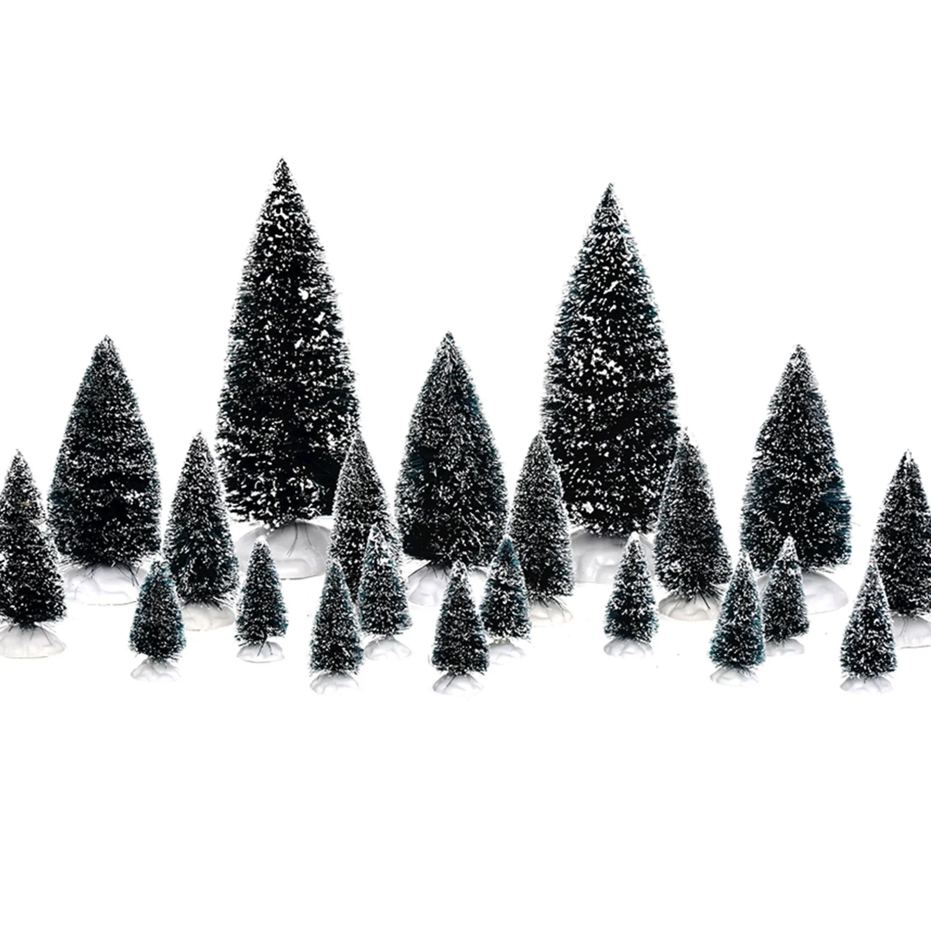 Set decoratieve boompjes die direct zorgen voor een winterse sfeer en perfect passen in een kerstdorpje of miniatuurdecoratie.