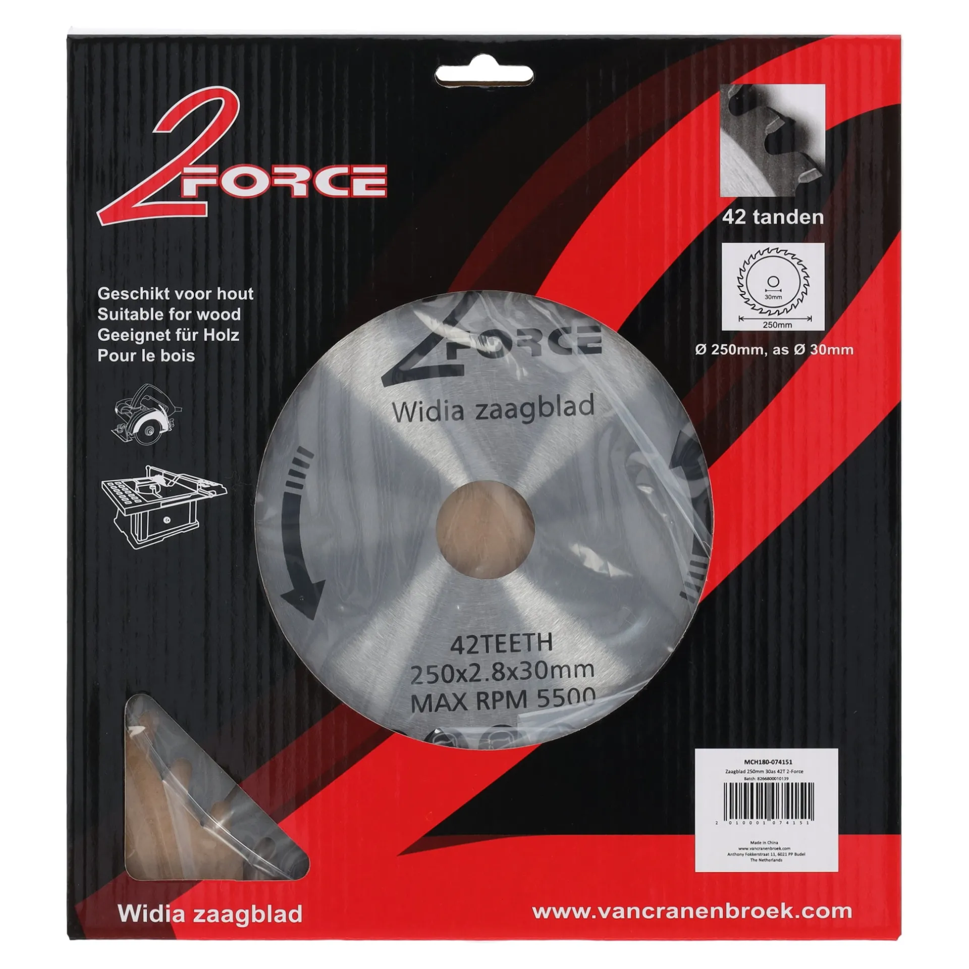 Krachtig widia zaagblad van 2-Force voor nauwkeurige zaagsneden in hout, geschikt voor diverse cirkel- en tafelzagen. Zaagblad is voorzien van expansiesleuven, welke uitzetting door warmte opvangen, trillingen verminderen en zo de stabiliteit en snijnauwkeurigheid tijdens het zagen behouden.
