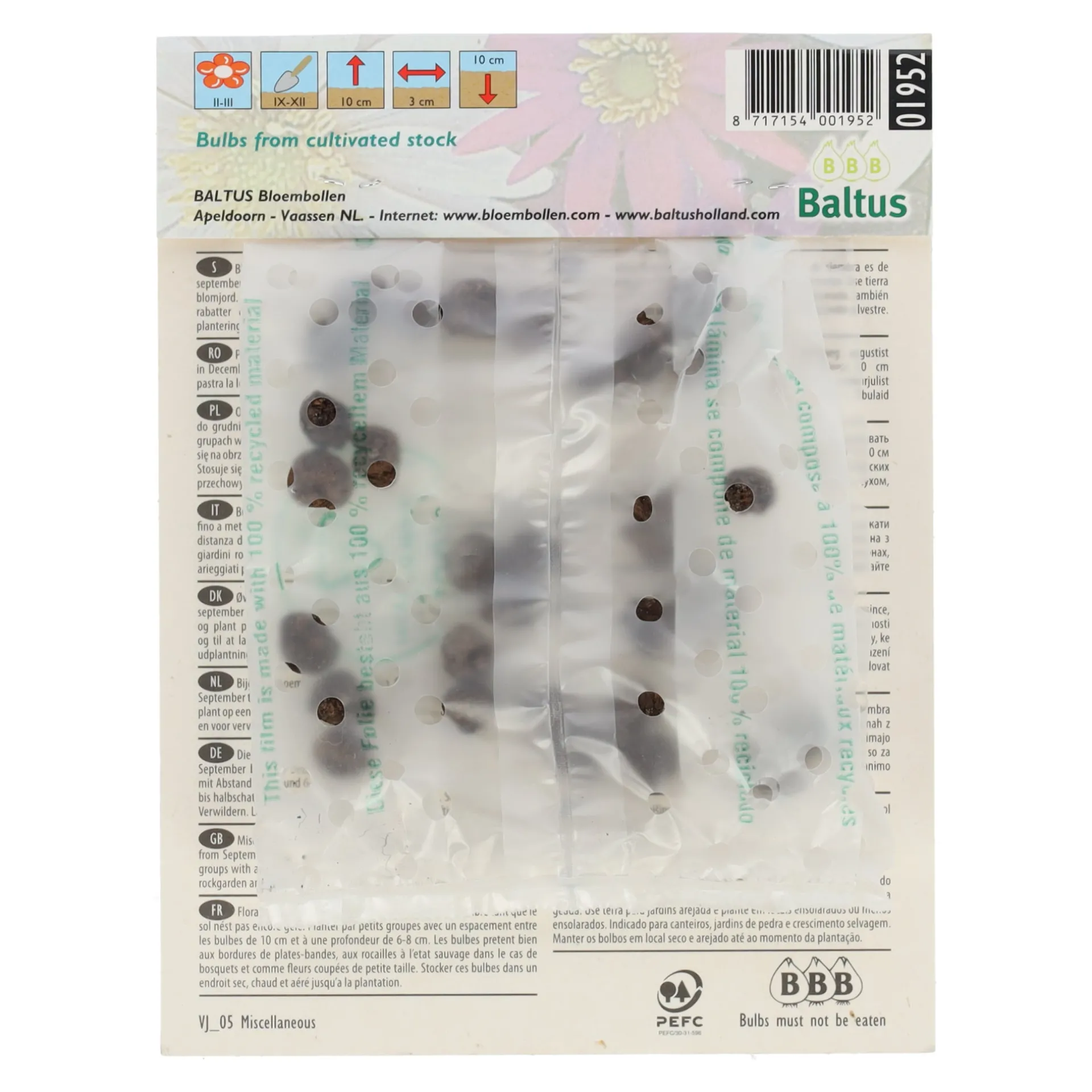 De decoratieve voorjaarsbloem met heldergele bloemen is winterhard en eenvoudig te verzorgen. Perfect voor bloementapijten en tuindecoratie vanaf het vroege voorjaar. De verpakking bevat 30 bollen.
