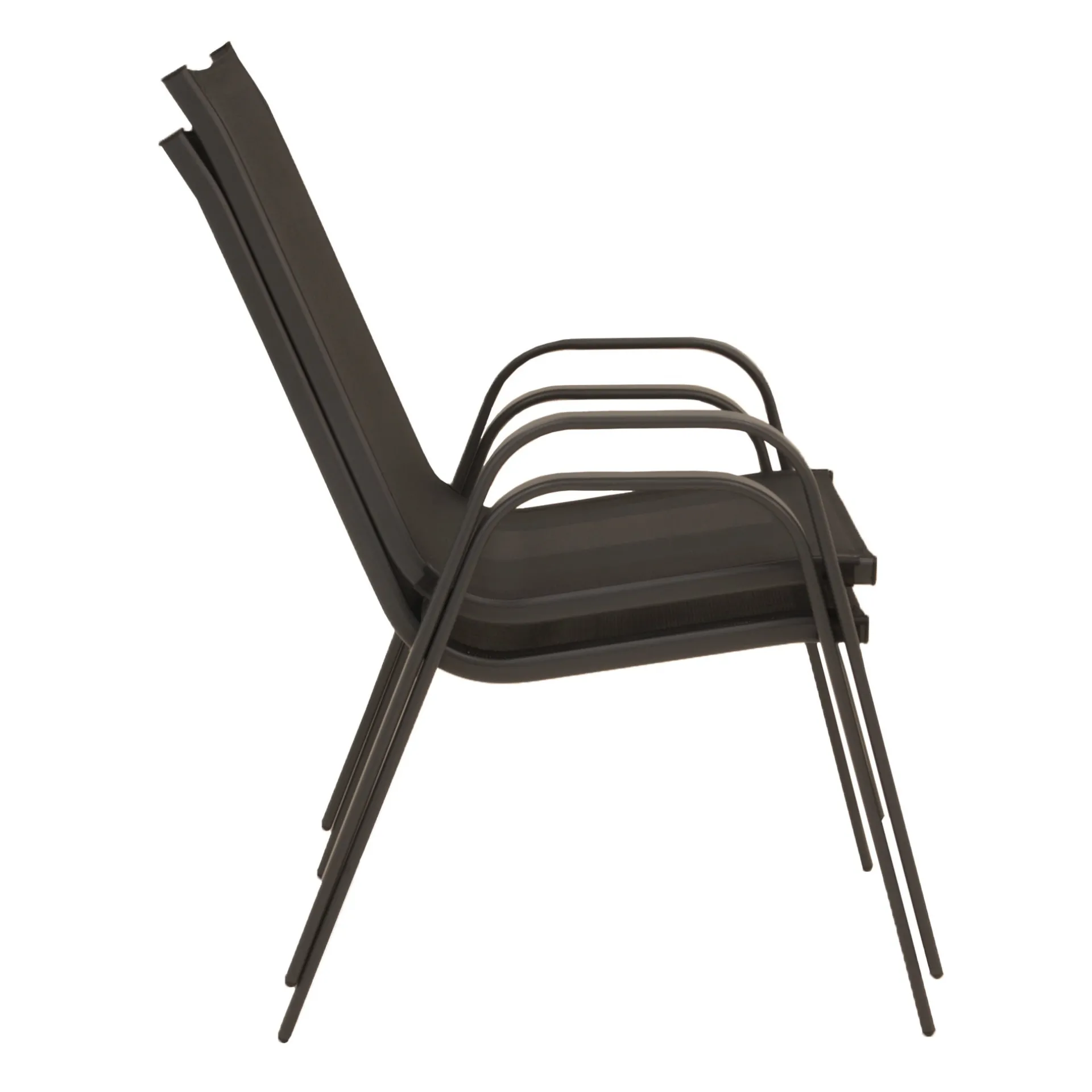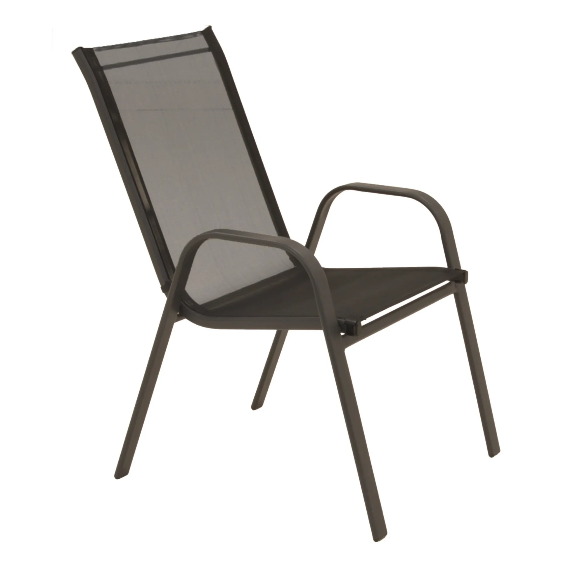 De Stapel Pretola in antraciet met zwart heeft een moderne en elegante uitstraling, perfect voor je tuin of terras. De stoel is voorzien van textilene voor zowel de zitting als de rugleuning, wat zorgt voor een comfortabele zitervaring en gemakkelijk onderhoud. Het stapelbare ontwerp maakt het eenvoudig om meerdere stoelen op te bergen wanneer ze niet in gebruik zijn. De combinatie van antraciet en zwart geeft de stoel een strakke, tijdloze look die in elke buitenruimte past.