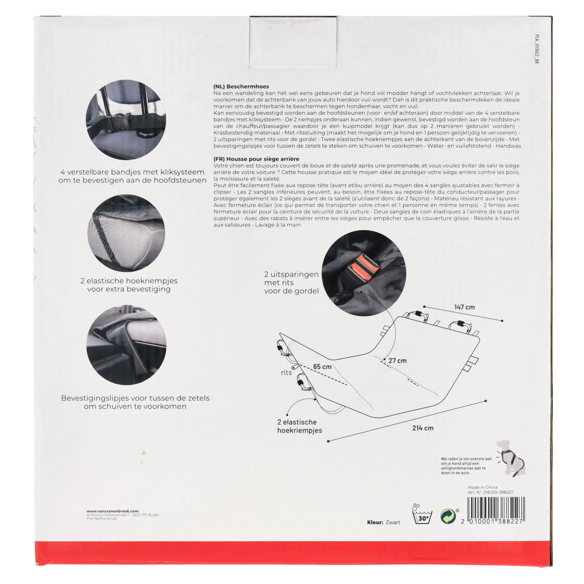 Dit autodeken met afmetingen van 214×147 cm, is een handige en betrouwbare accessoire om het interieur van uw auto te beschermen tegen vuil, dierenharen en vocht bij het vervoeren van huisdieren. Dit deken kan eenvoudig bevestigd worden op de achterbank en heeft een speciale, slijt- en vuilbestendige coating. Het past in de meeste auto’s en biedt een comfortabele plek voor uw huisdier, terwijl het de bekleding beschermt.
