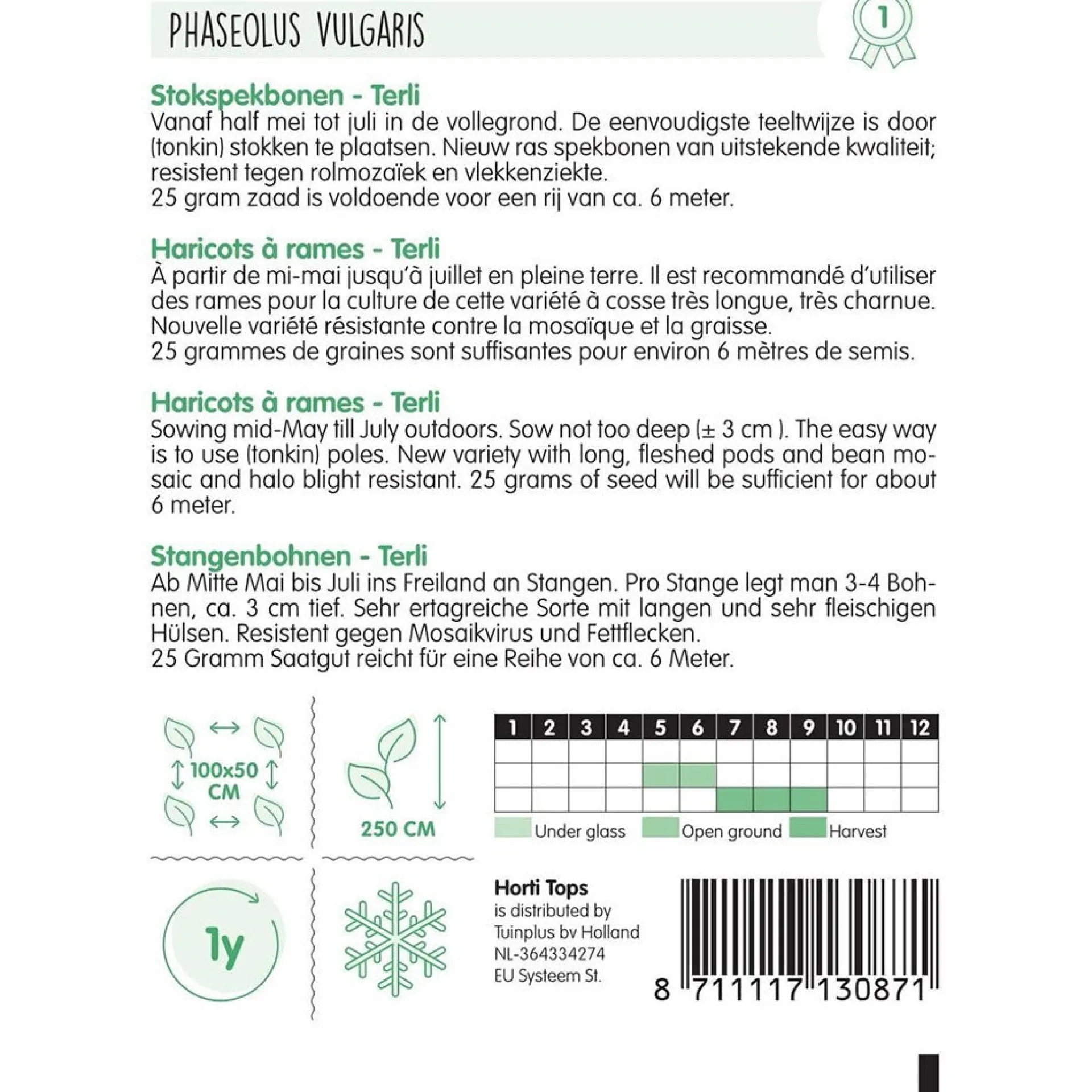 Deze bonen zijn perfect voor het kweken in de tuin. De peulen hebben een uitstekende smaak en kunnen worden gebruikt in verschillende culinaire gerechten. Ze zijn resistent tegen ziekten en groeien gemakkelijk in de open lucht.