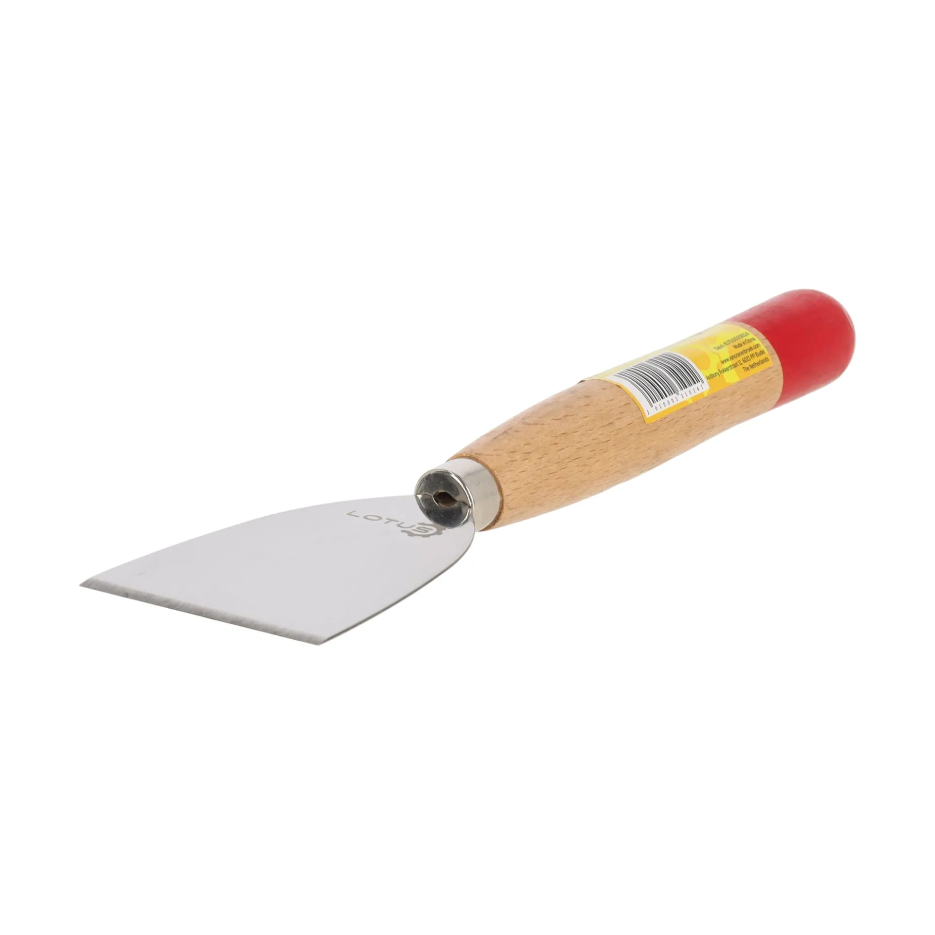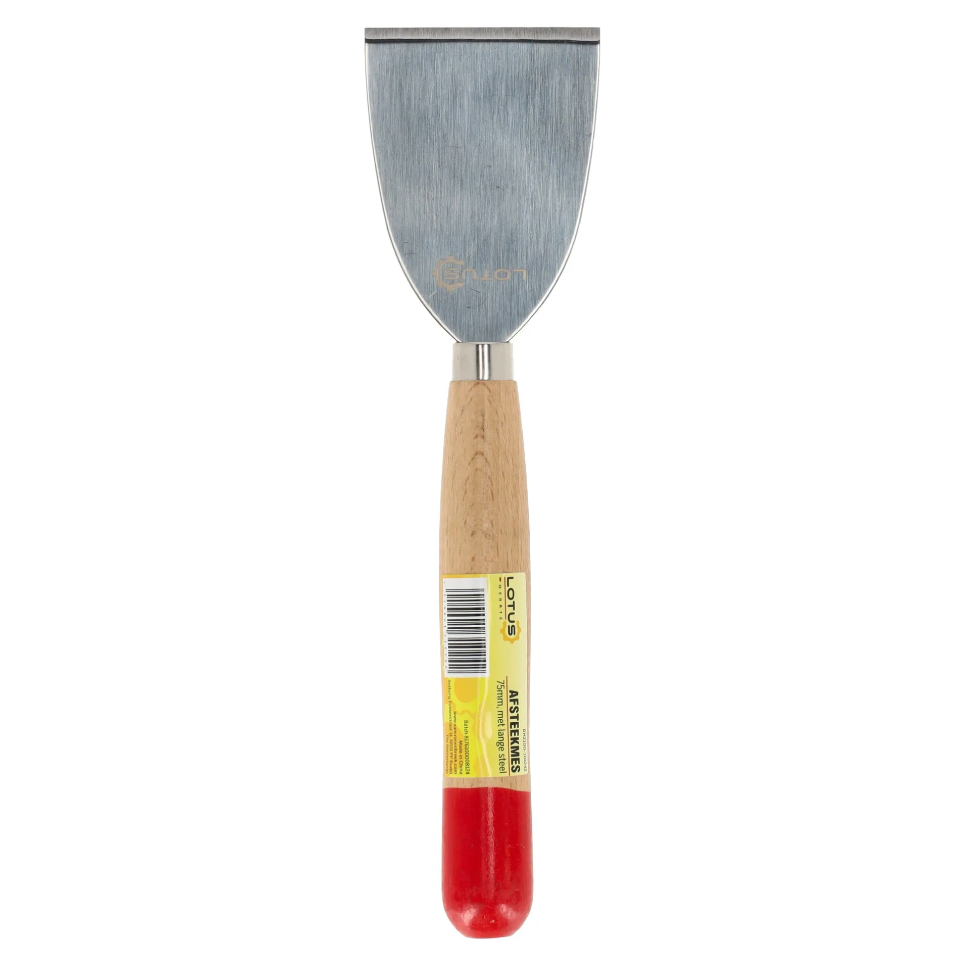 Het Lotus schraapmes heeft een breed lemmet van 75 mm en een lange handgreep, ideaal voor het verwijderen van verf, oud behang en andere bekledingen.