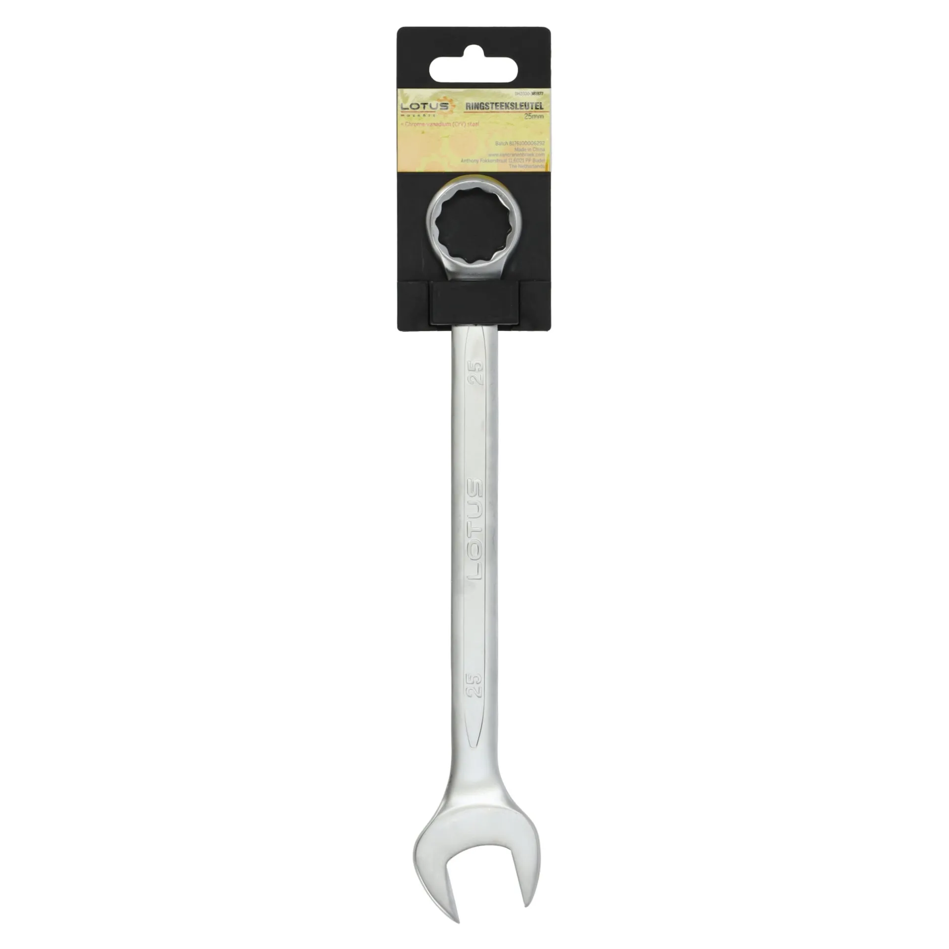 De 25 mm CV Lotus ringsteeksleutel is een hoogwaardig gereedschap dat een ringsleutel en steeksleutel combineert. Gemaakt van chroom-vanadiumstaal (CV), biedt het uitstekende sterkte en duurzaamheid. Dit gereedschap is perfect voor nauwkeurig werk waarbij een stevige grip met minimale inspanning nodig is. Een uitstekende keuze voor zowel professionals als doe-het-zelvers.