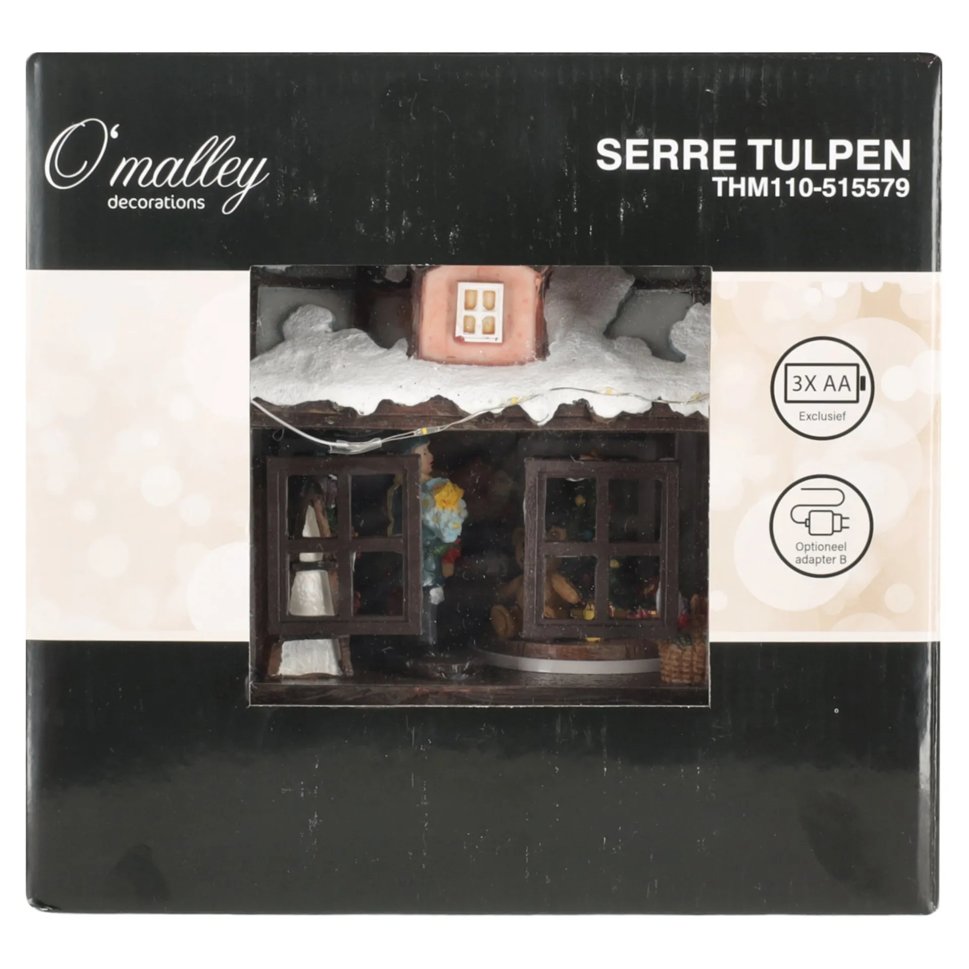 Sfeervolle kerstserre vol tulpen met warme verlichting, geluid en beweging.