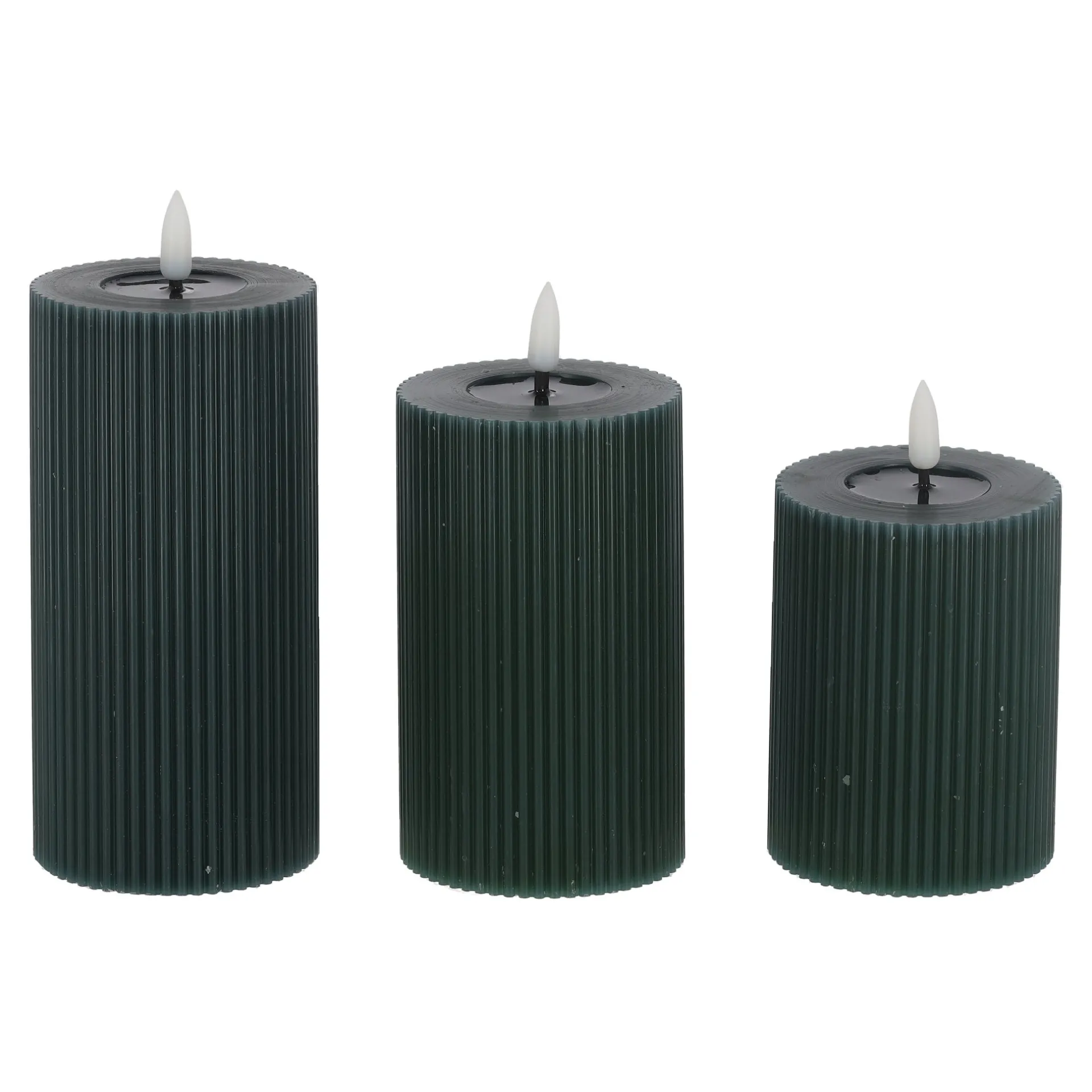 Fashion O’malley LED Kaars Rib Melt 3st Donkergroen