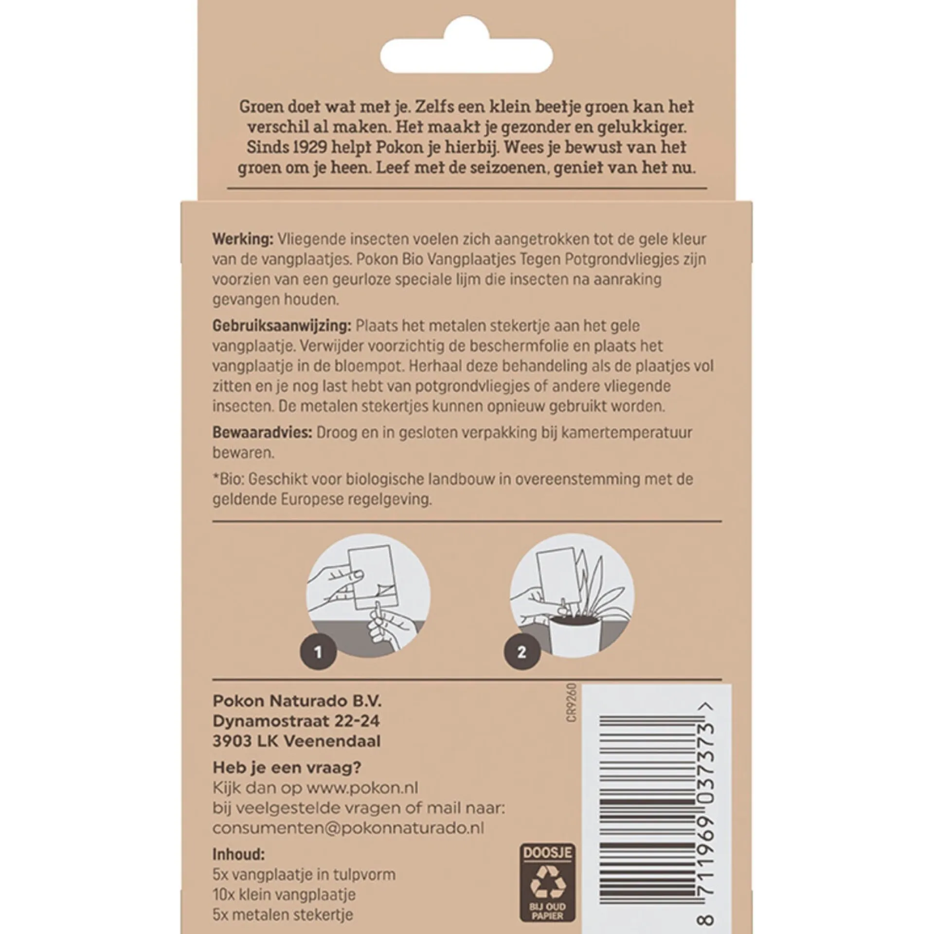 Effectief middel tegen potgrondvliegjes (rouwvliegjes), plagen die planten kunnen beschadigen. De vangplaatjes trekken de vliegen aan en vangen ze effectief, waardoor verdere verspreiding van de plaag wordt voorkomen. Veilig voor planten en huisdieren.
