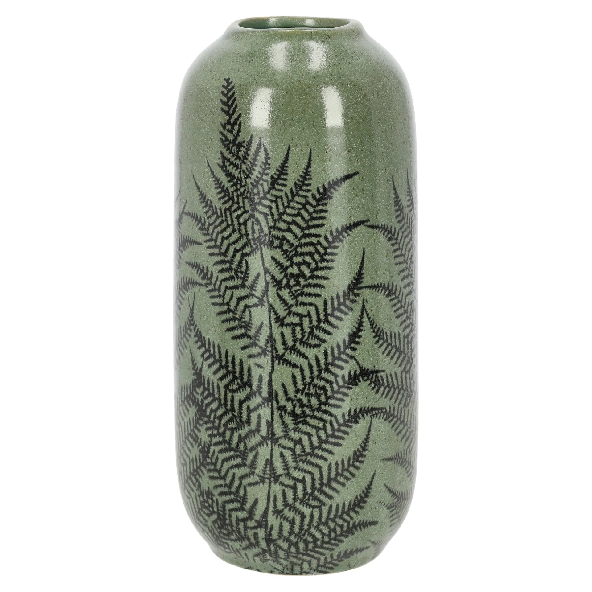 Vaas in groene tint met decoratief bladmotief. De subtiele glans en natuurlijke uitstraling maken deze vaas geschikt voor zowel bloemen als takken. Een stijlvol accent in elk interieur.