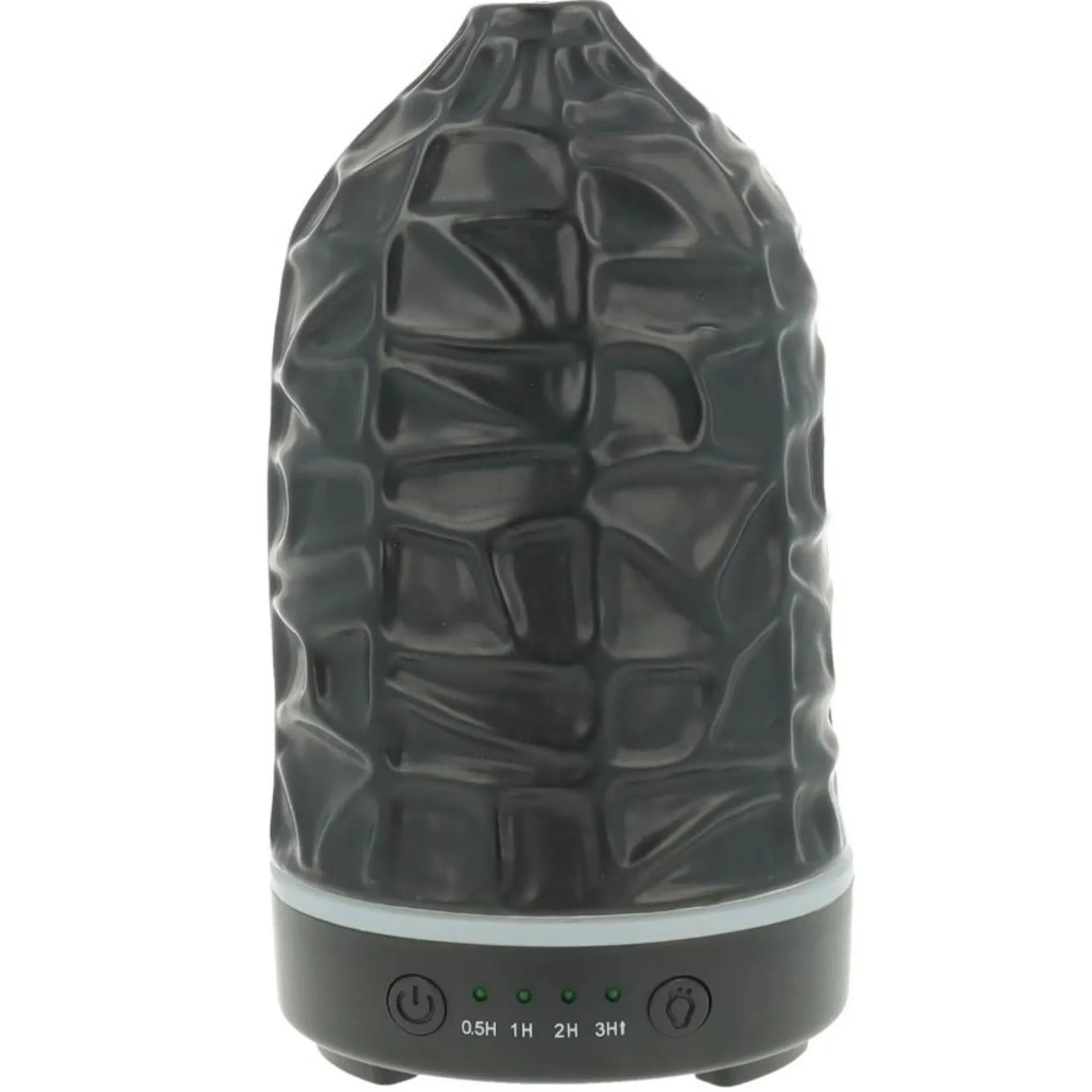 Stijlvolle mist diffuser in zwart met een gehamerd reliëf. Werkt op waterbasis in combinatie met geurolie en zorgt voor een fijne geurverspreiding en sfeervolle verlichting in huis. Geschikt voor gebruik met Scentchips aroma’s.