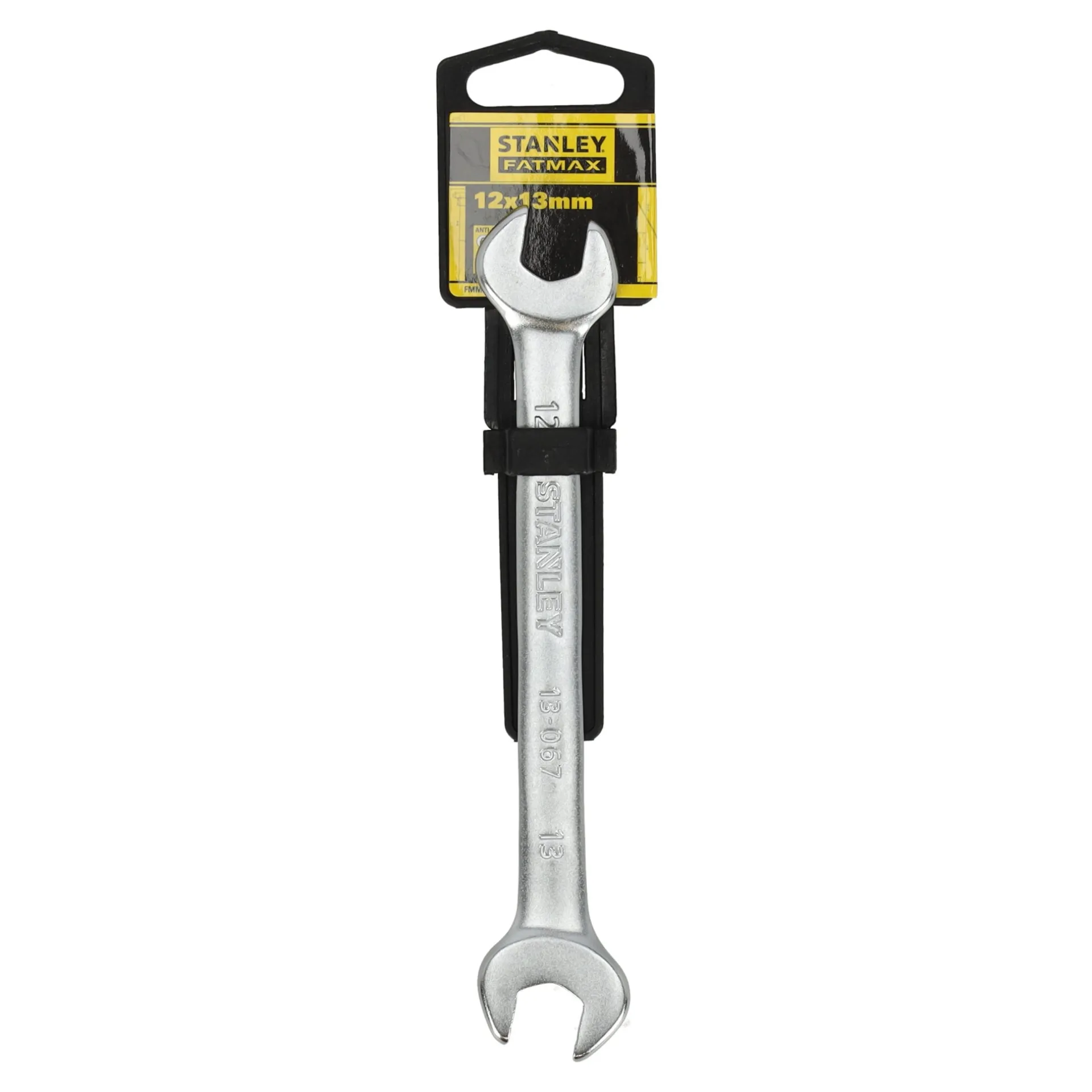 De Stanley FatMax steeksleutel is vervaardigd uit chroom-vanadiumstaal en voldoet aan de normen ISO 3318 en DIN 3113, wat zorgt voor duurzaamheid en hoge nauwkeurigheid. De antislip bekken staan in een hoek van 15° voor optimale grip, terwijl de matte chroomafwerking zorgt voor gebruiksgemak. Geschikt voor bouten en moeren, met een sleutelmaat van 12×13 mm.