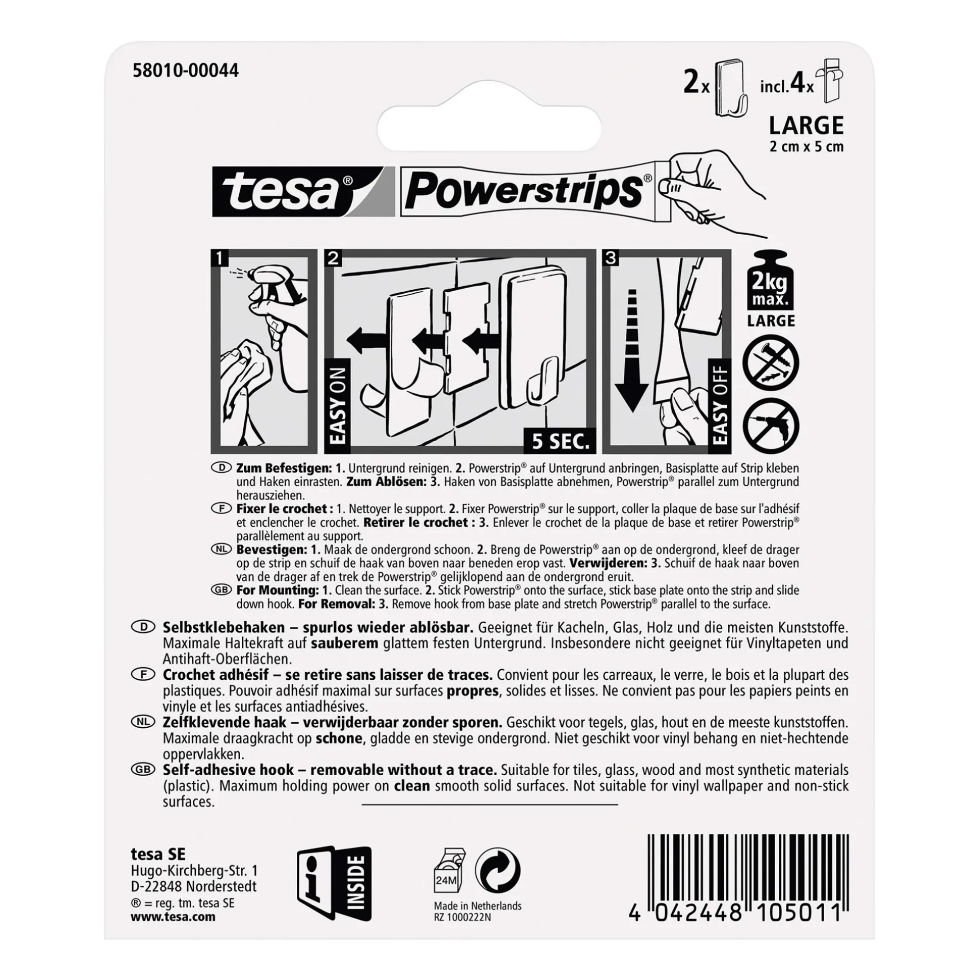Tesa witte klassieke Powerstrips bieden een stevige bevestiging op gladde oppervlakken. Gemakkelijk te verwijderen zonder resten, ideaal voor tijdelijke oplossingen zonder spijkers of schroeven.