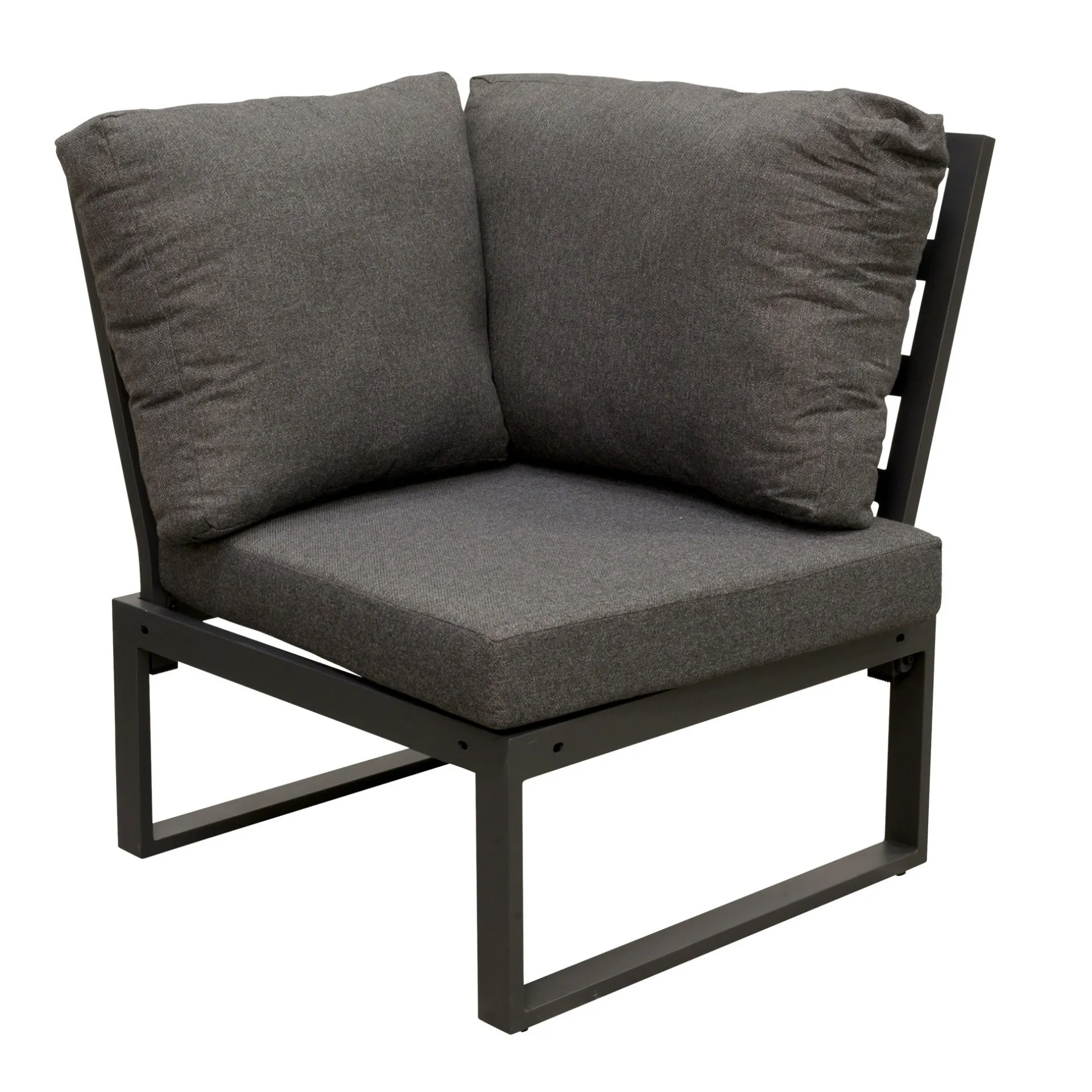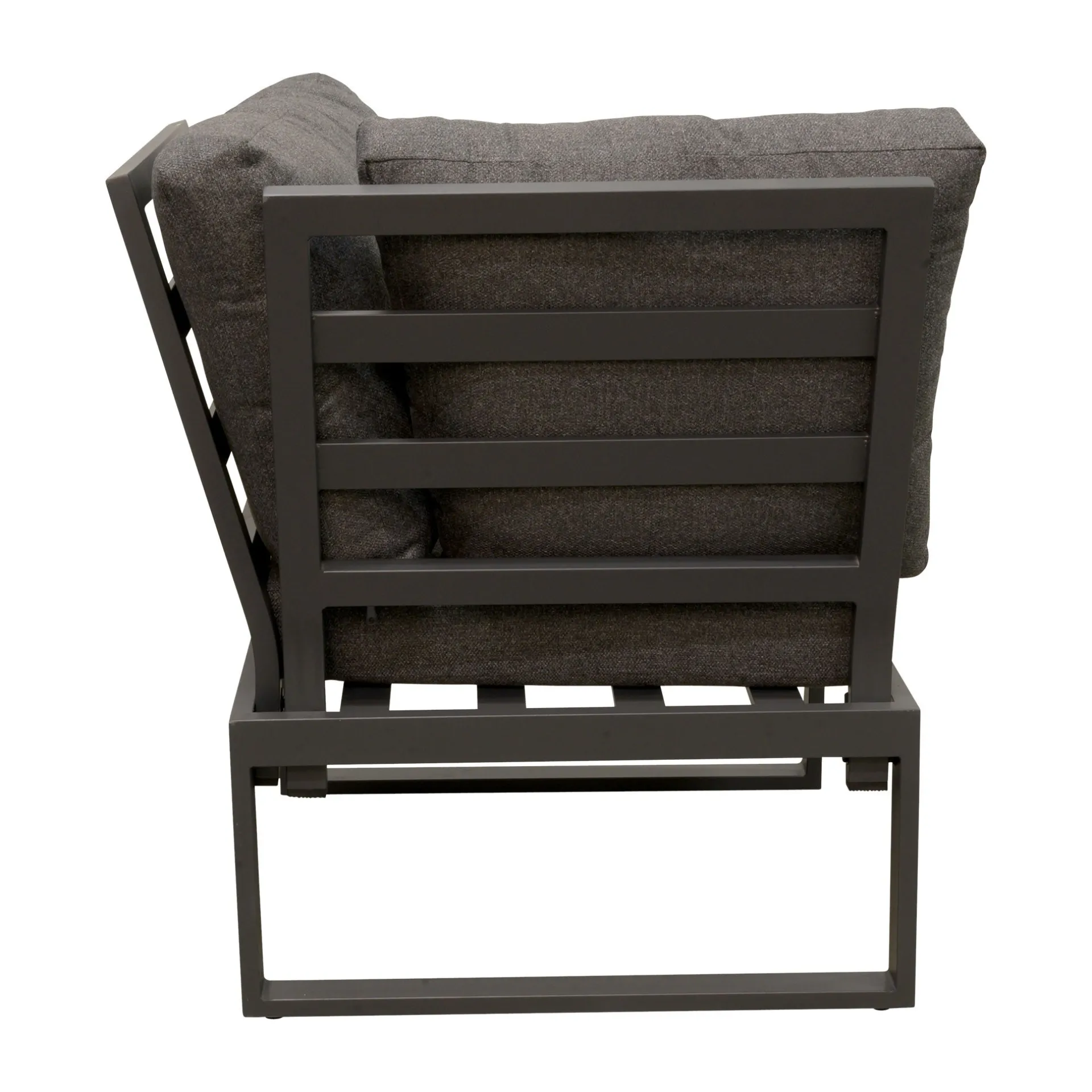 De hoekbank Foxton Antraciet heeft een stevig aluminium frame. Wordt geleverd met kussens voor extra comfort, ideaal om een gezellige zithoek te creëren in je tuin.