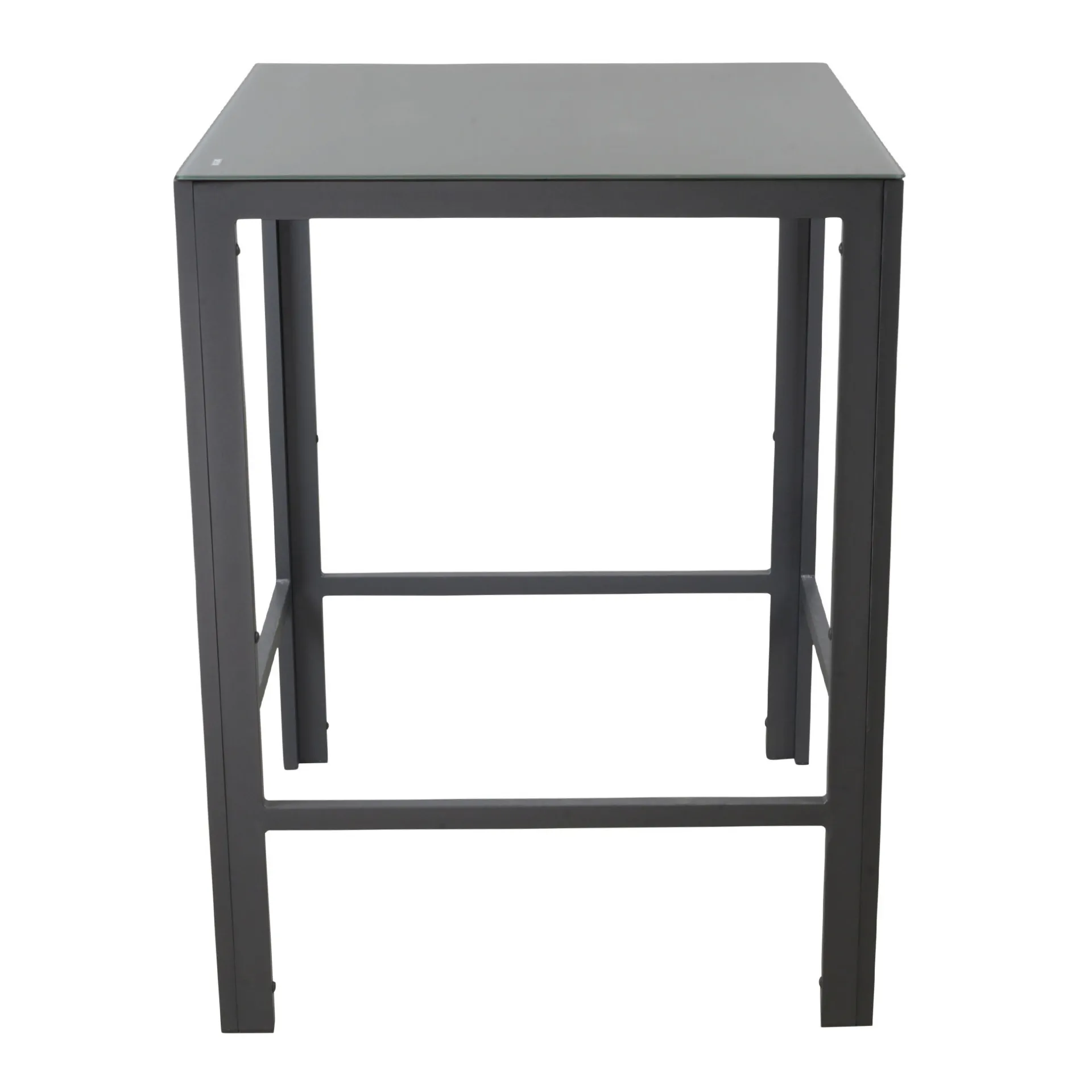 Tafel Bar Verati is een moderne bartafel met een stevig aluminium frame dat niet kan roesten. Het tafelblad is voorzien van een veiligheidsglasplaat, wat zorgt voor een strakke uitstraling en eenvoudig onderhoud. Ideaal voor gebruik in de tuin, op het terras of onder een overkapping.