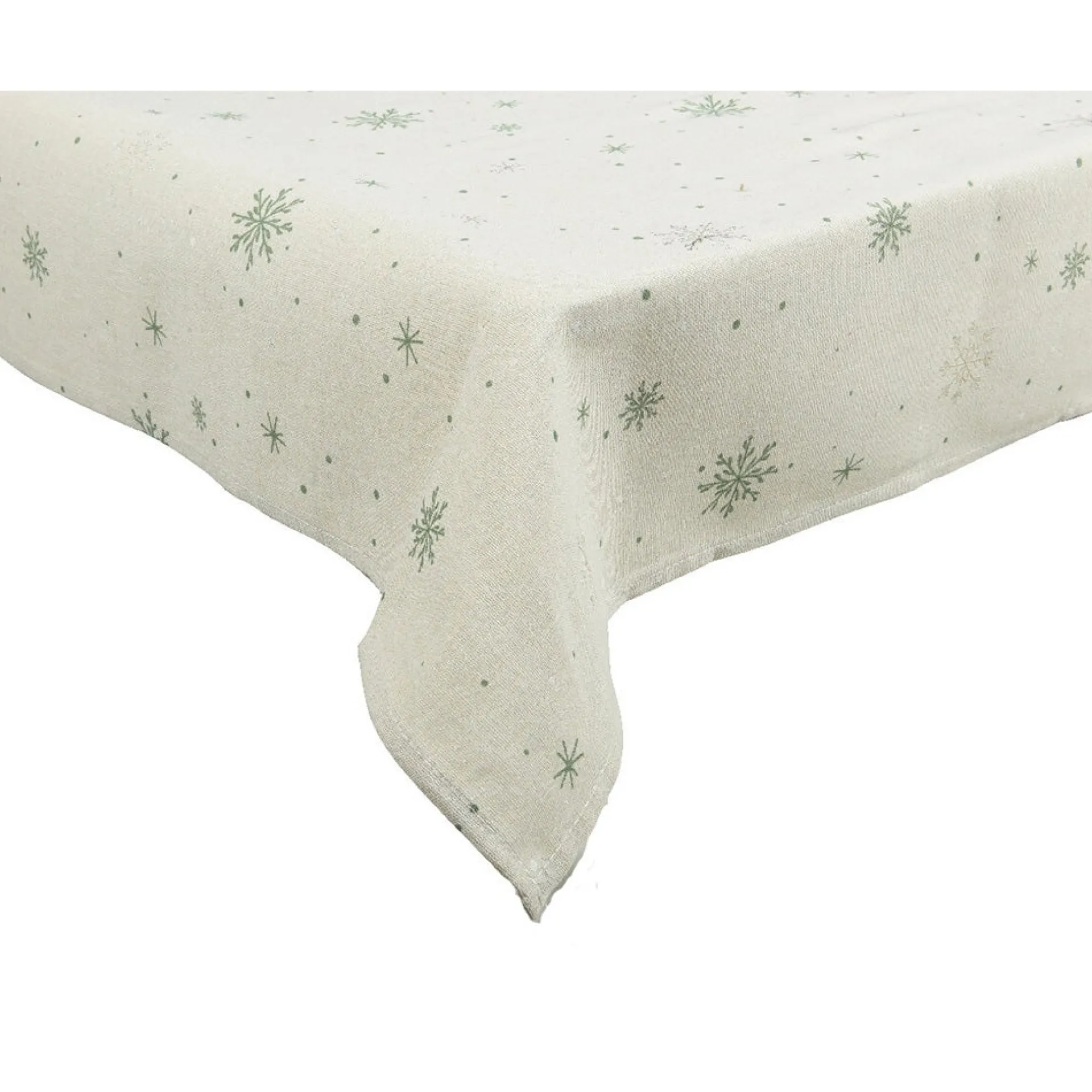 Tafelkleed in naturel kleur met subtiel sneeuwvlokkenpatroon, afmeting 140 x 240 cm. Perfect voor een feestelijke en sfeervolle eettafel.