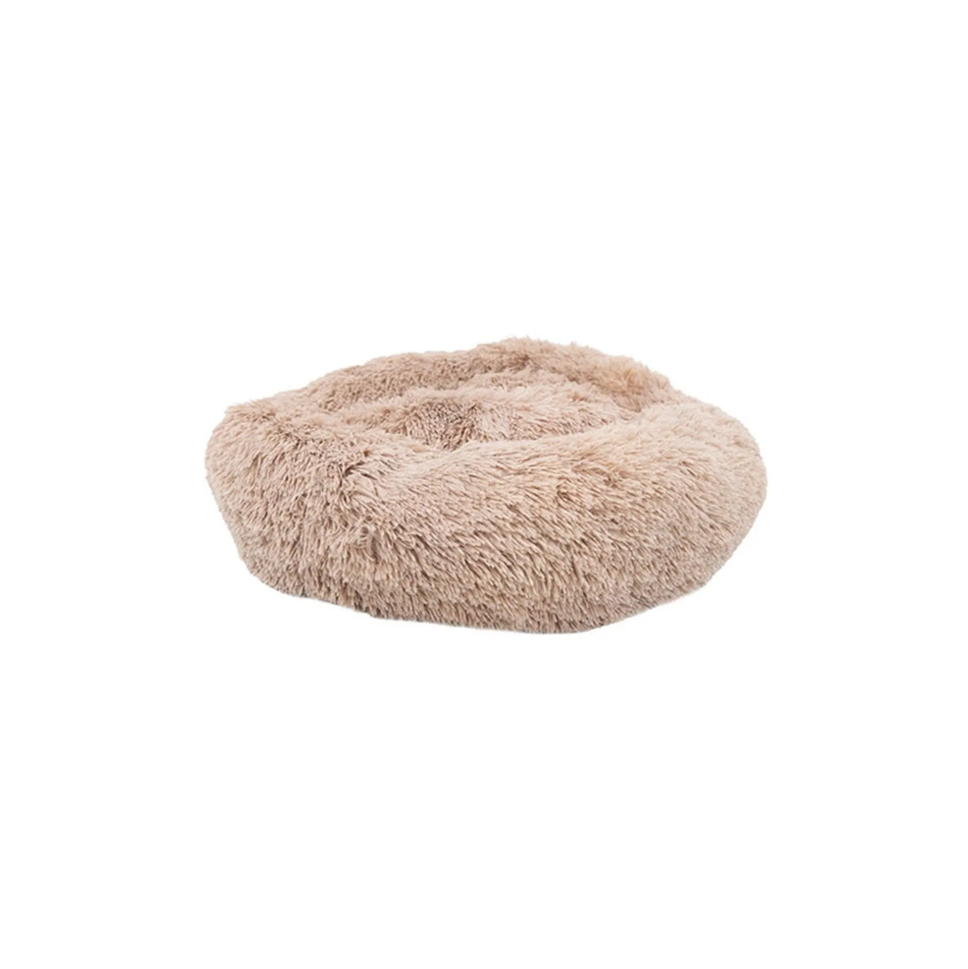 Deze ronde dierenmand heeft een hoge, zachte rand en een bekleding met langharige, harige stof waarin je huisdier zich knus kan oprollen. De oudroze kleur geeft de mand een warme uitstraling en maakt het een comfortabele ligplek voor je hond of kat.
