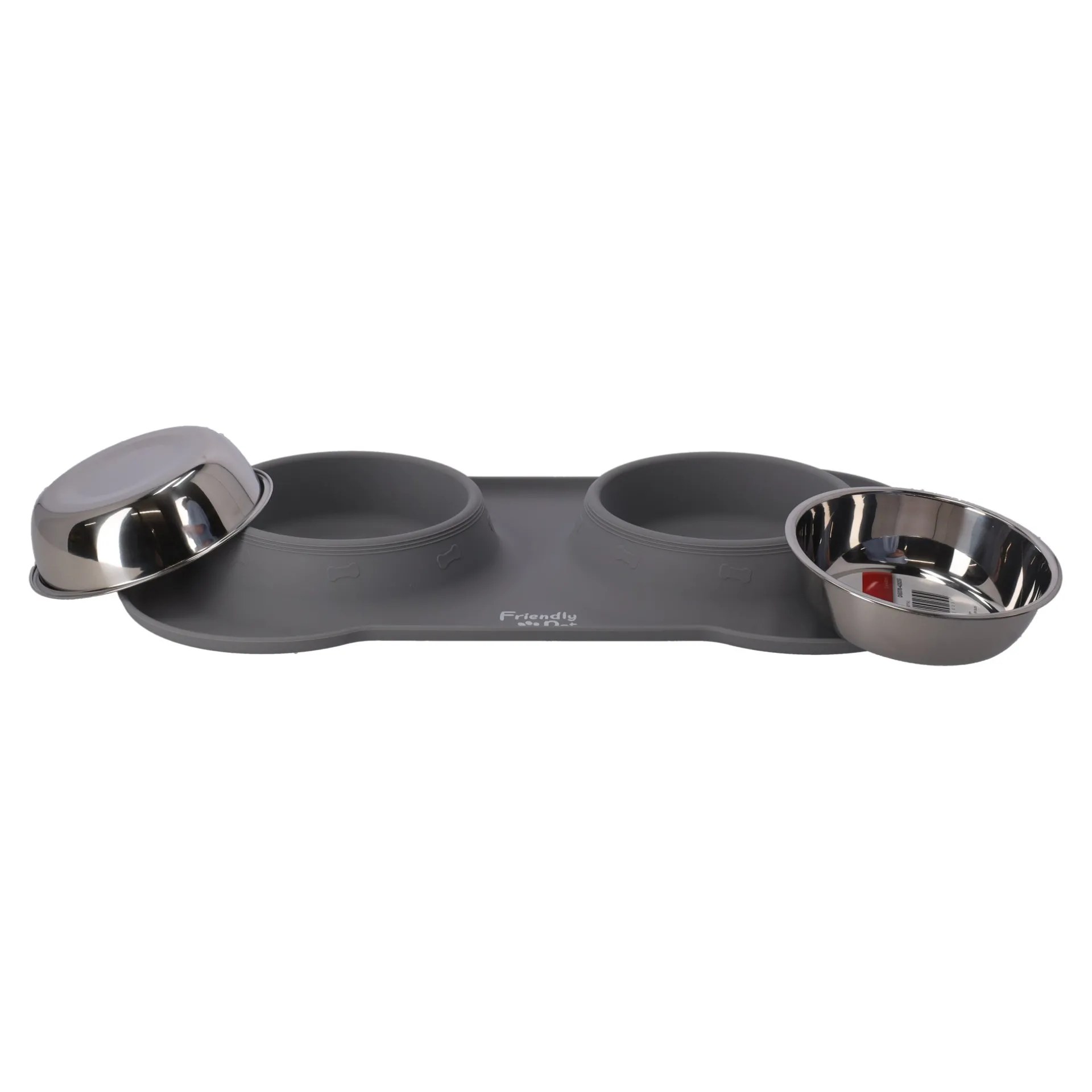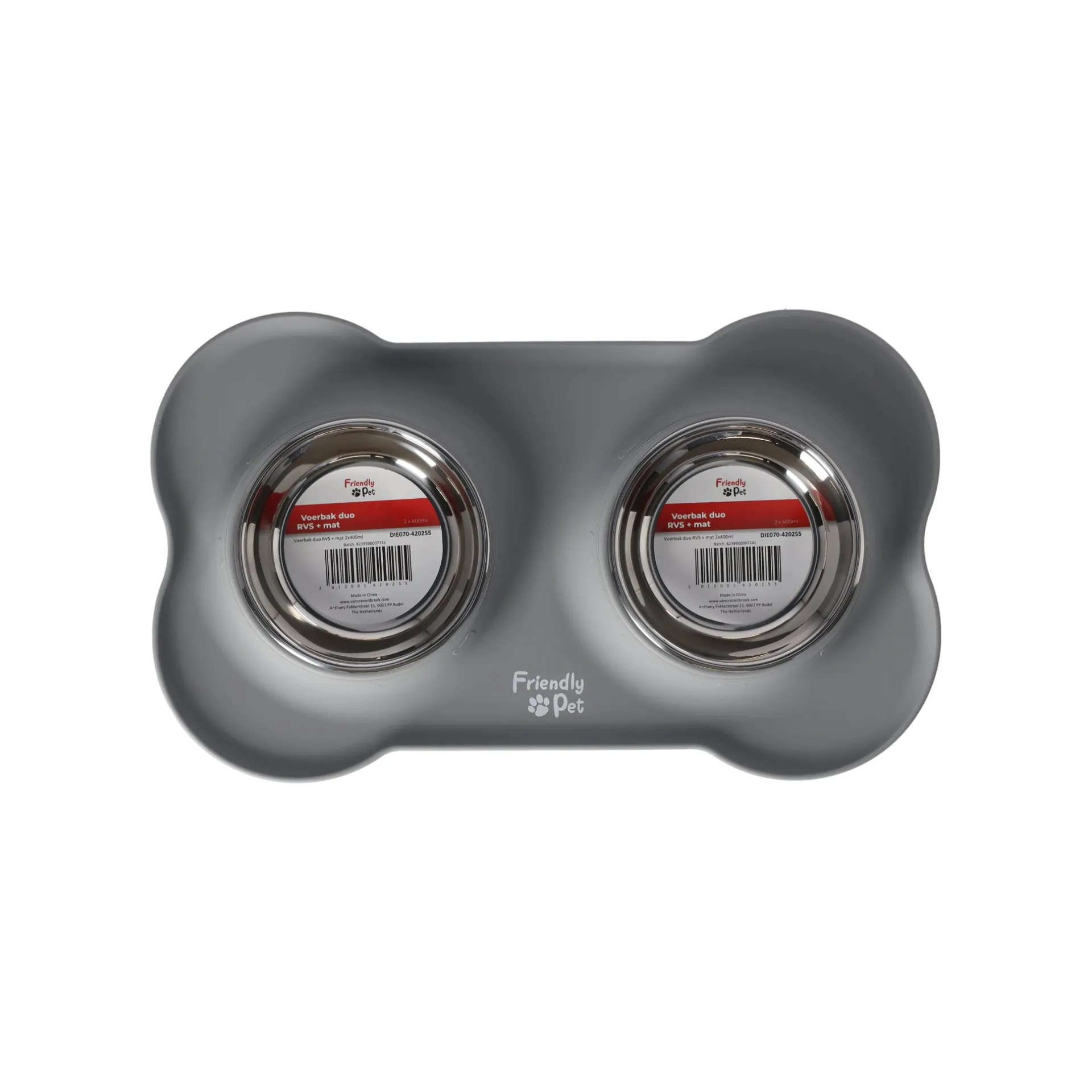 Hot Friendly Pet Voerbak Duo RVS + Mat 2x400ml